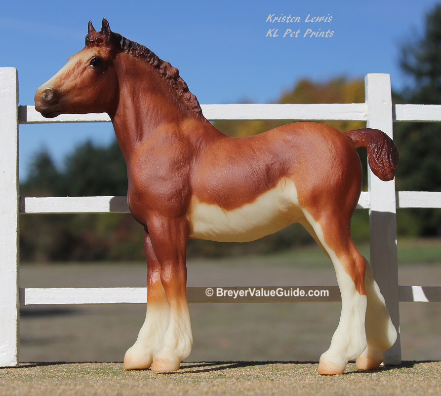 Matte chestnut pinto; white belly; bald face; 4 stockings