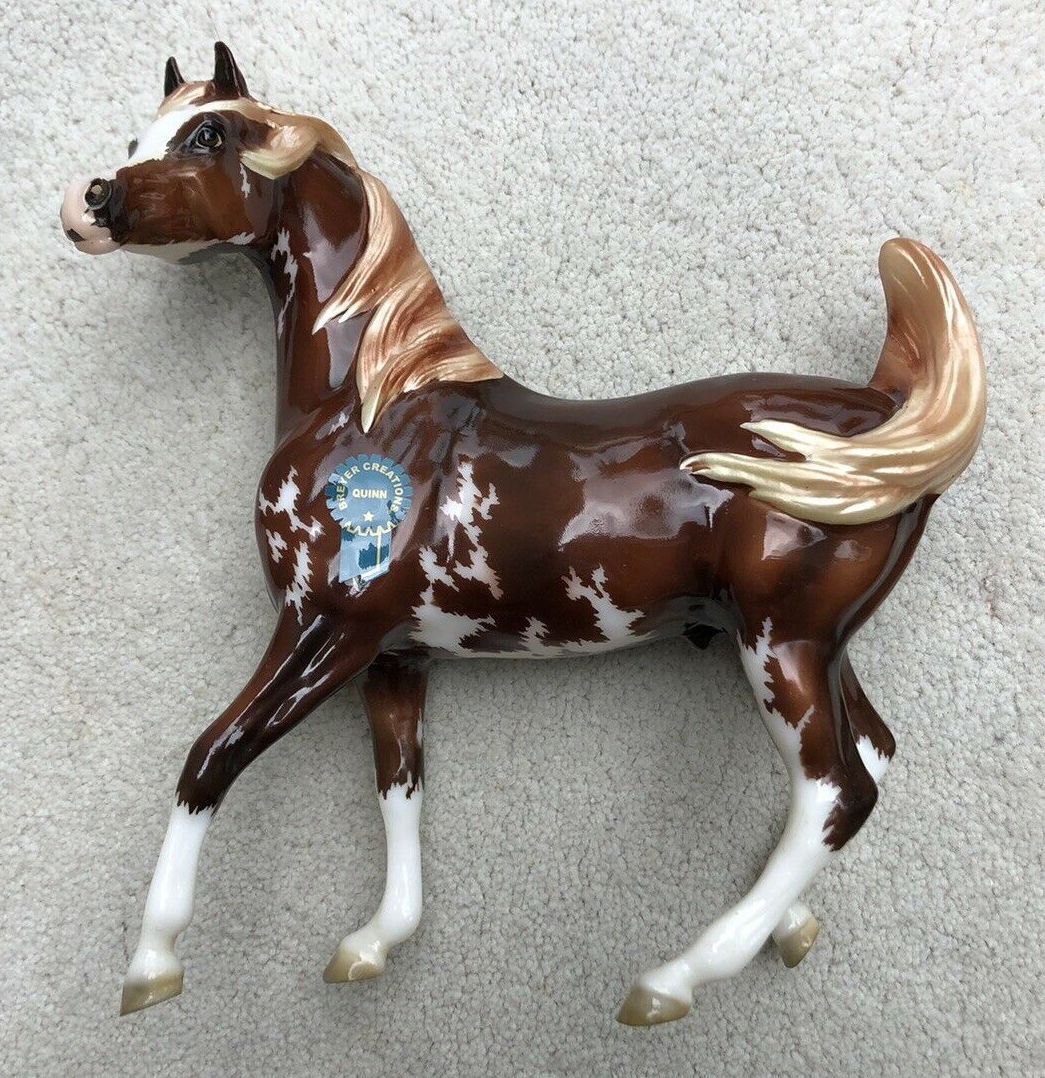 Glossy dark chestnut pinto; sabino markings; wide blaze; 4 stockings; red rope halter with tassels; blue ribbon sticker; carrying case box; Vintage Club SR; 1/500