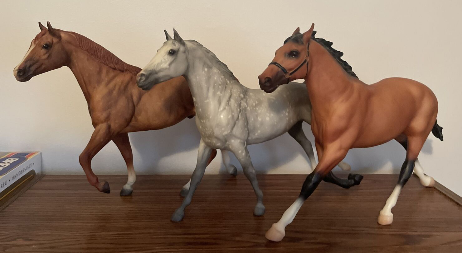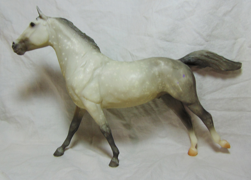 Matte dapple grey; resist dapples; 2 hind socks; JCPenney SR – with Pacer; Stock Horse Stallion