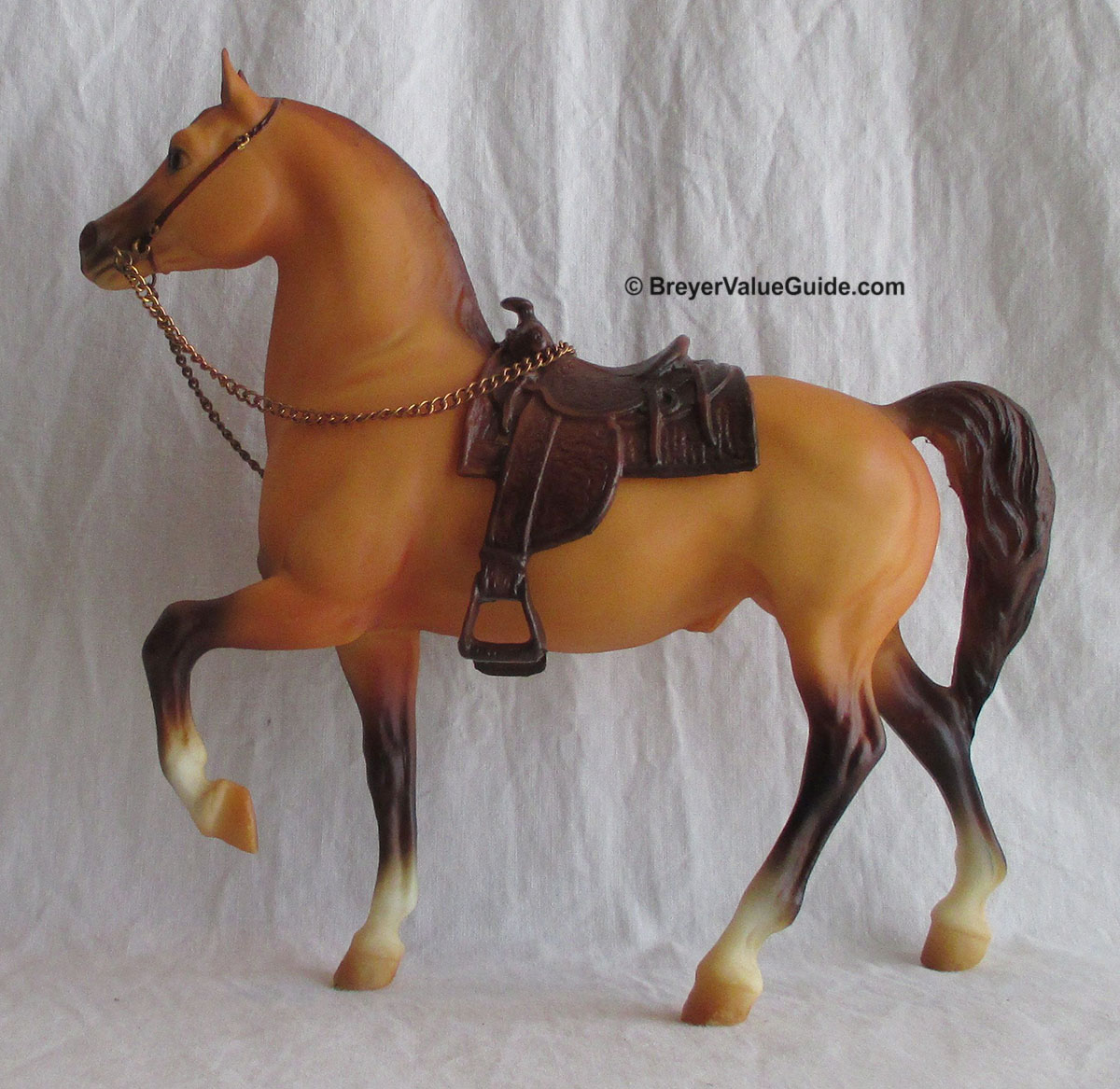 Matte dun; brown points; blaze; 4 socks; brown saddle