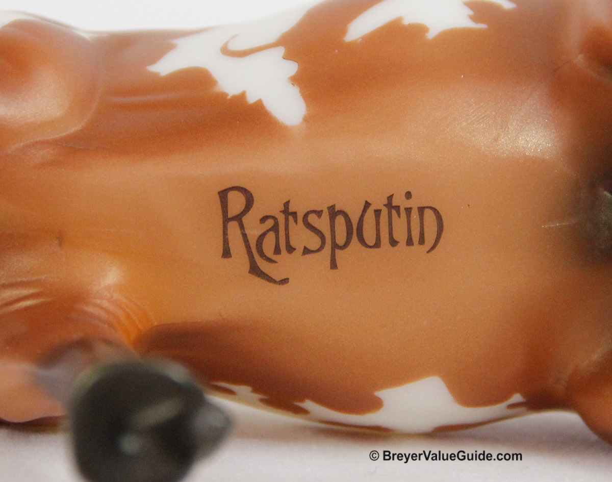 2020 Freedom Series Halloween Horse Matte wild bay pinto with gold interference, 13 rats hidden in pinto pattern, “Ratsputin” printed on belly, glows in the dark