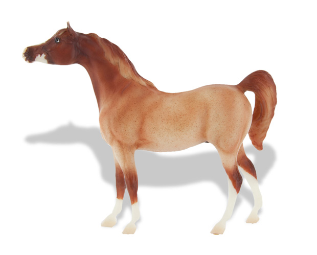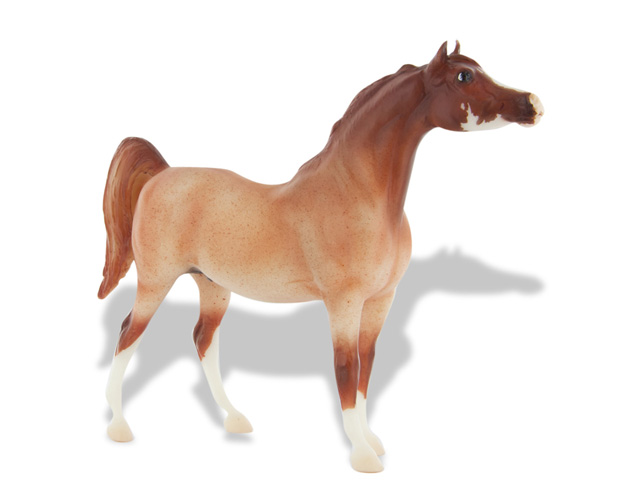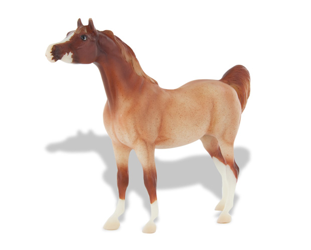 Matte red roan pinto; blaze with white muzzle; white spot under chin; 4 stockings; same as #618; Walmart Sunshine Stables