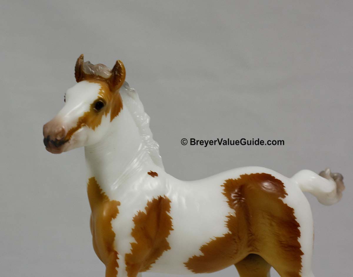 Rhiannon mare – matte bay pinto, dapples, mapped markings, wide blaze, 4 stockings
