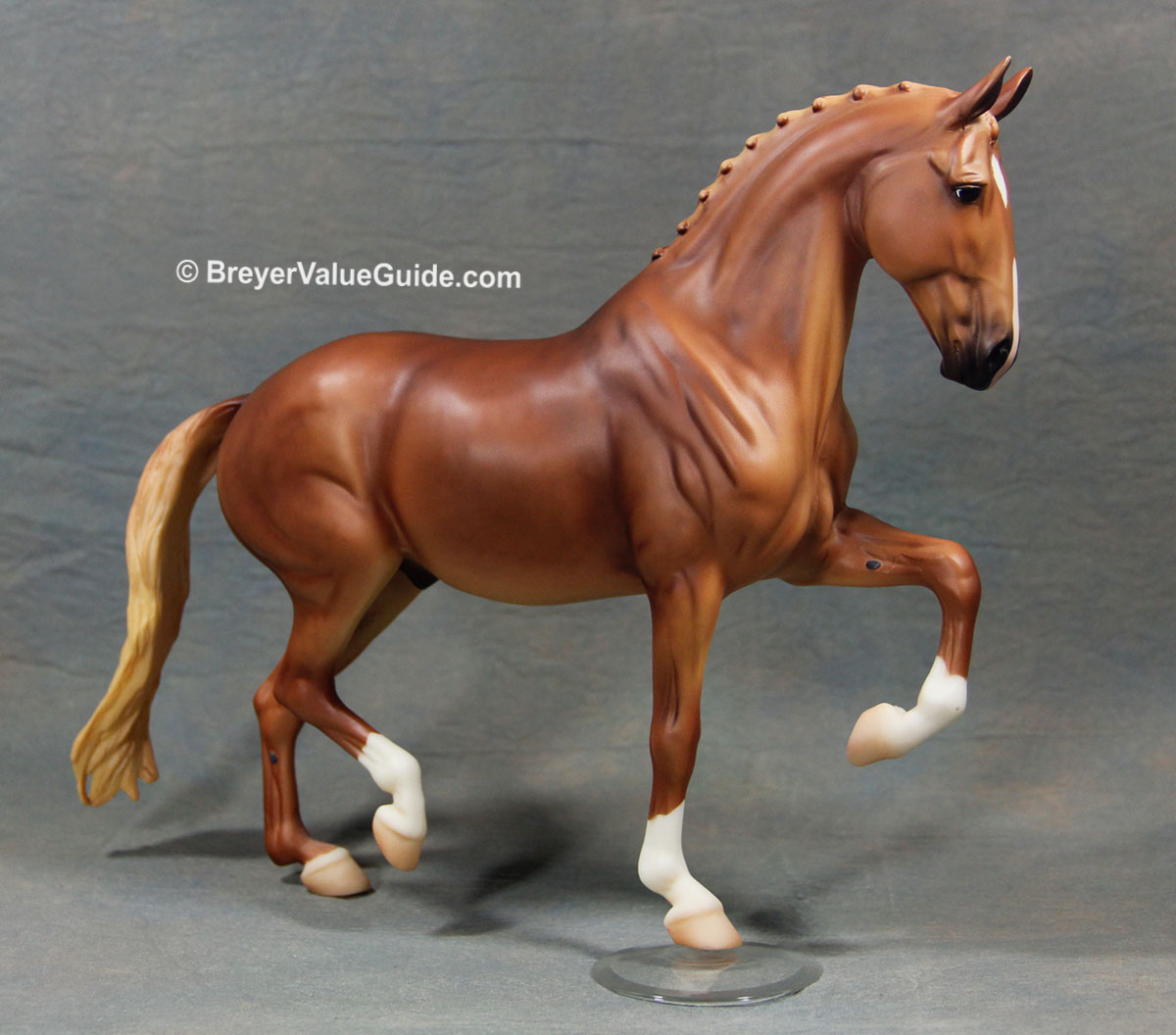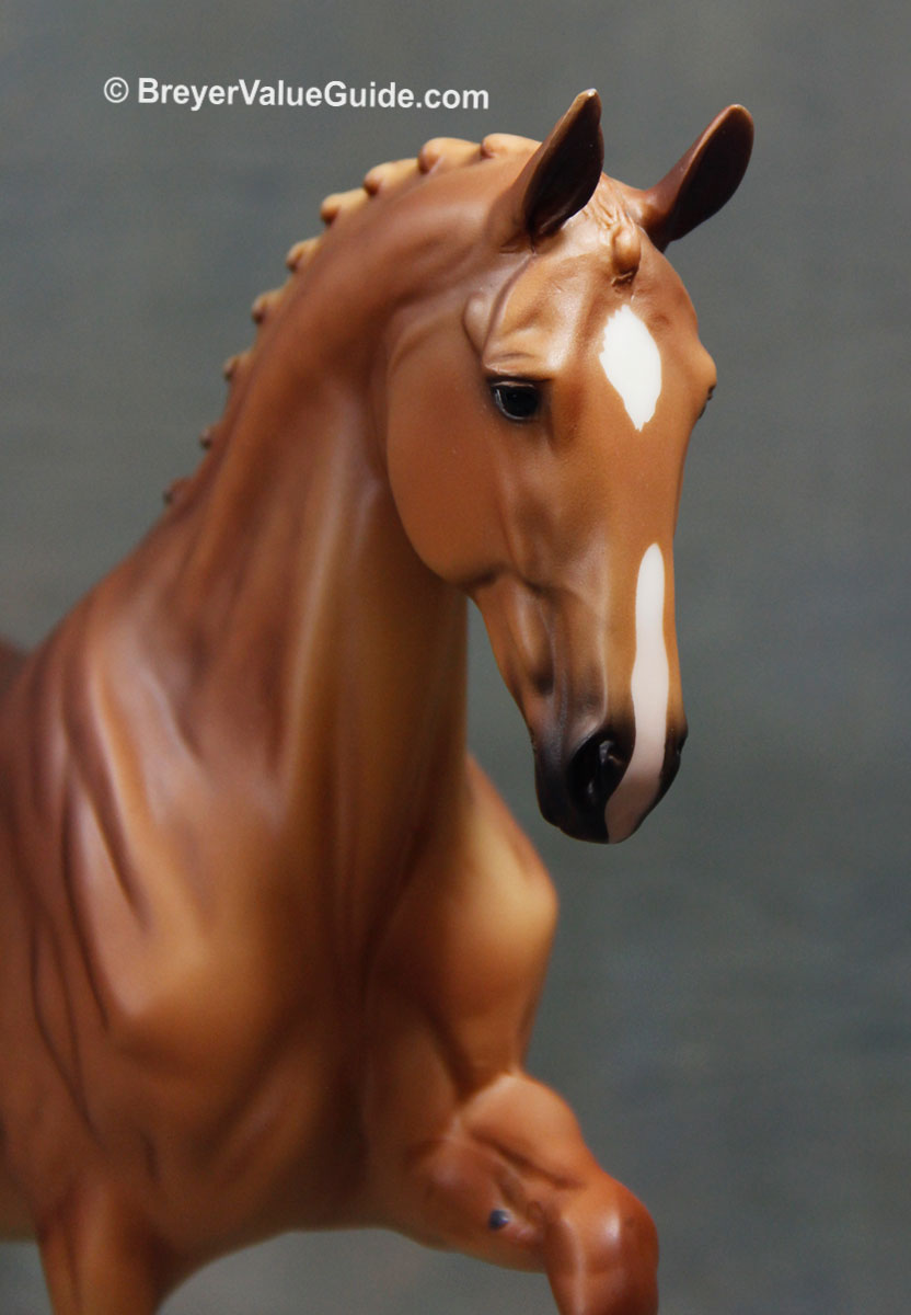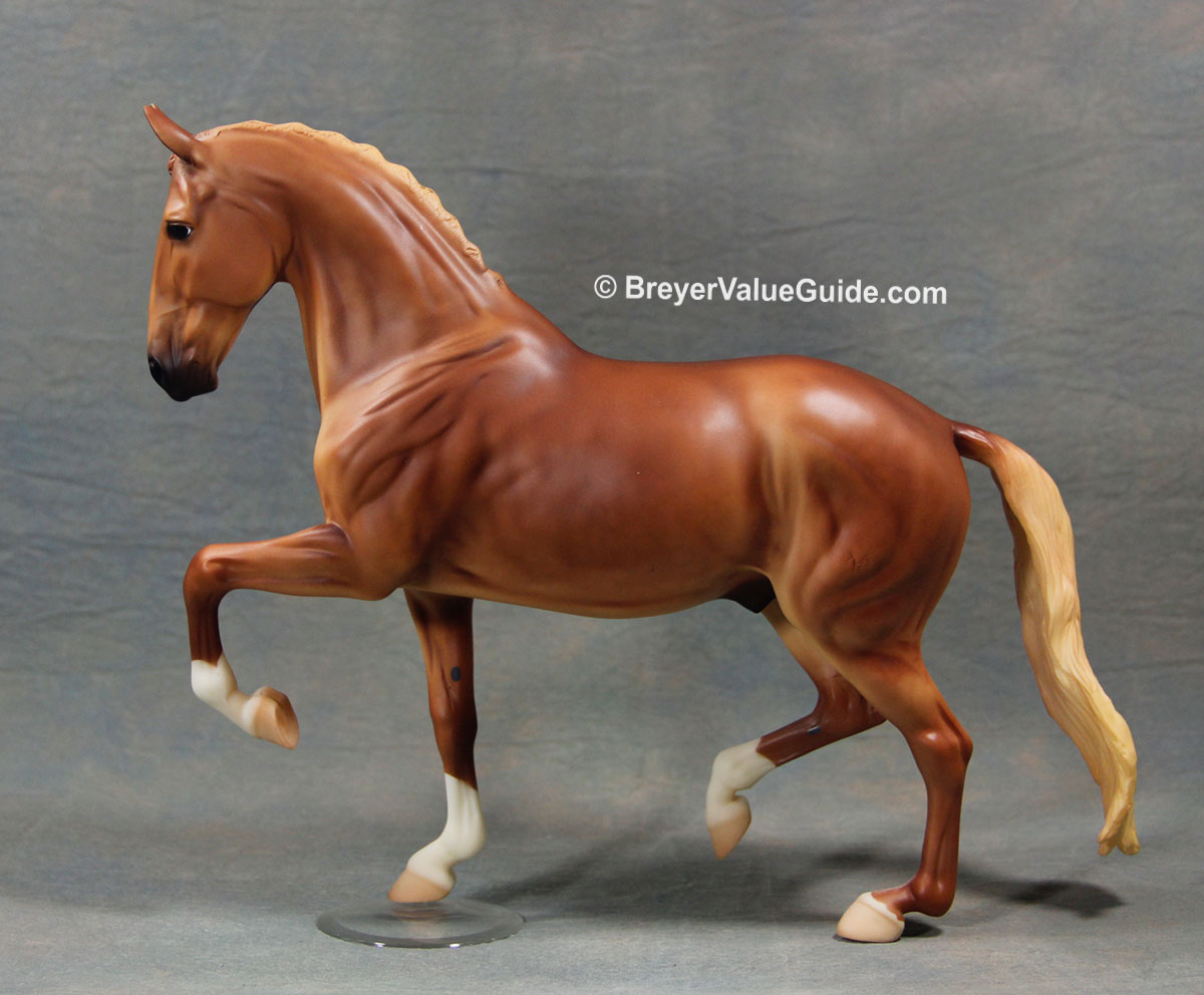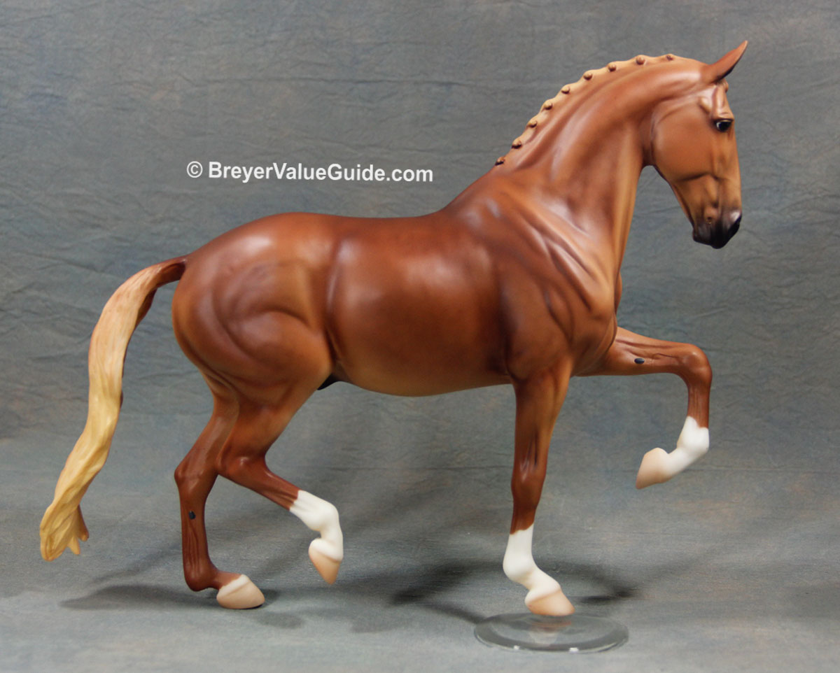 Matte dappled chestnut; star and snip; 4 socks; flaxen tail; BreyerFest SR; 1/1250