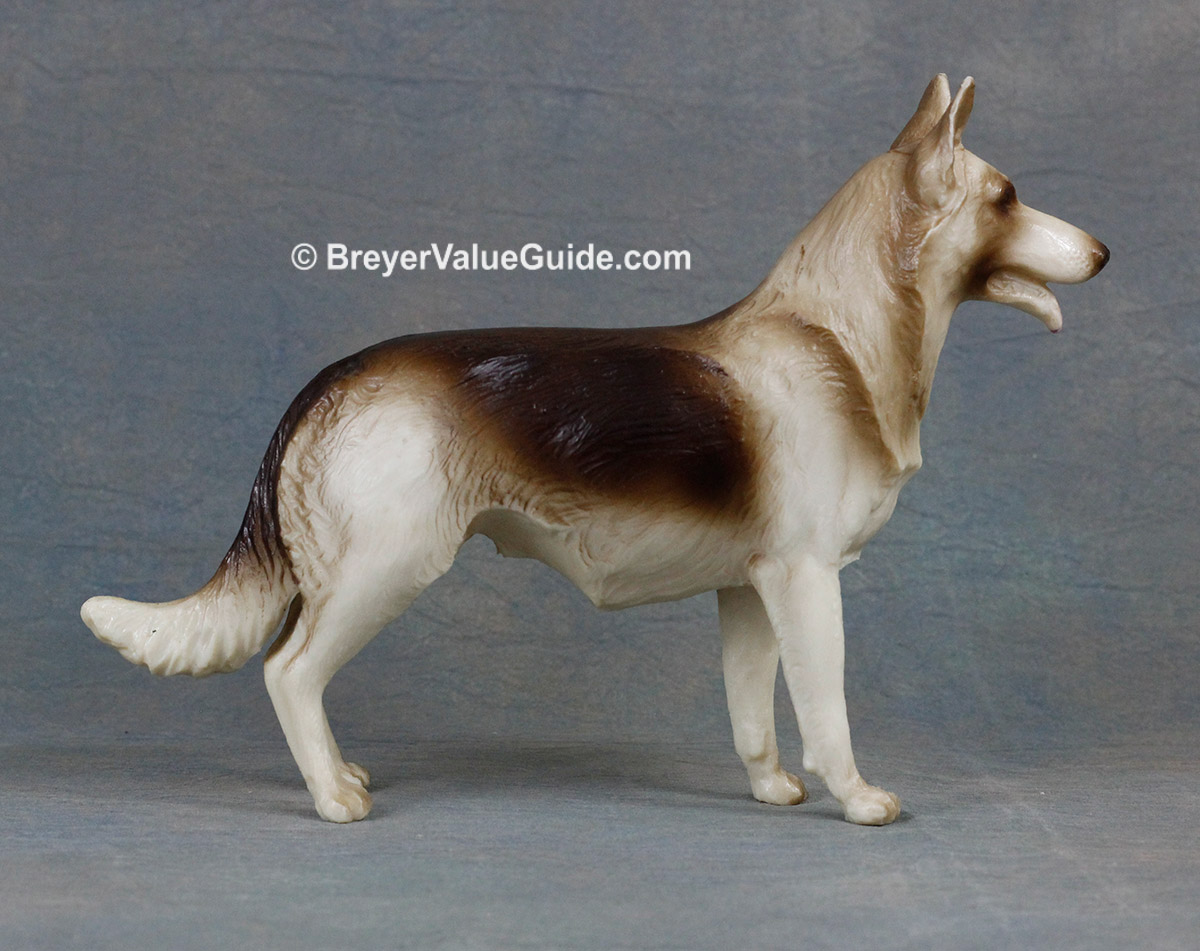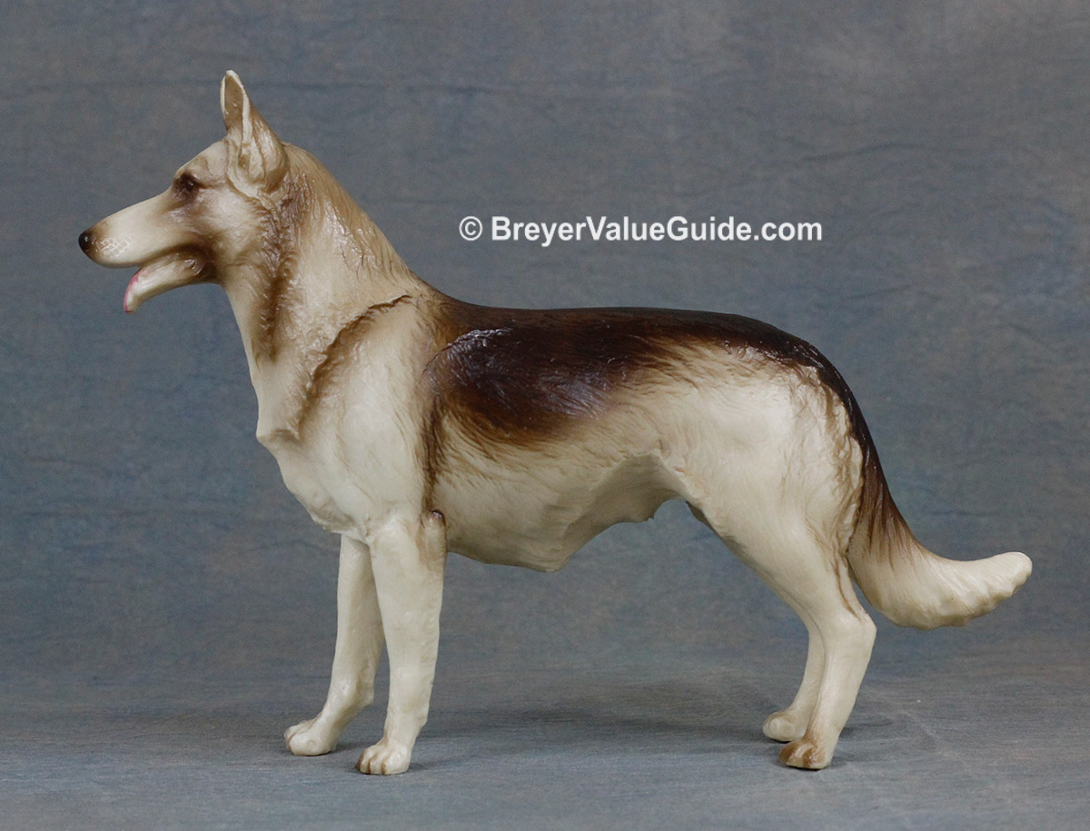 Matte to semigloss brown saddle back; shading on neck; dark nose; pink tongue