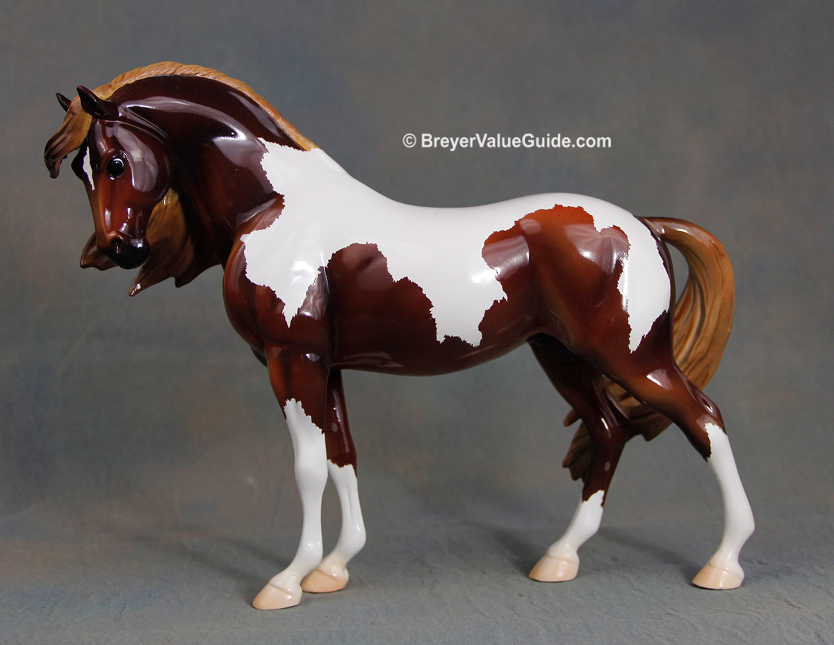 Glossy red chestnut pinto; star; 4 socks; BreyerFest SR; 1/1000