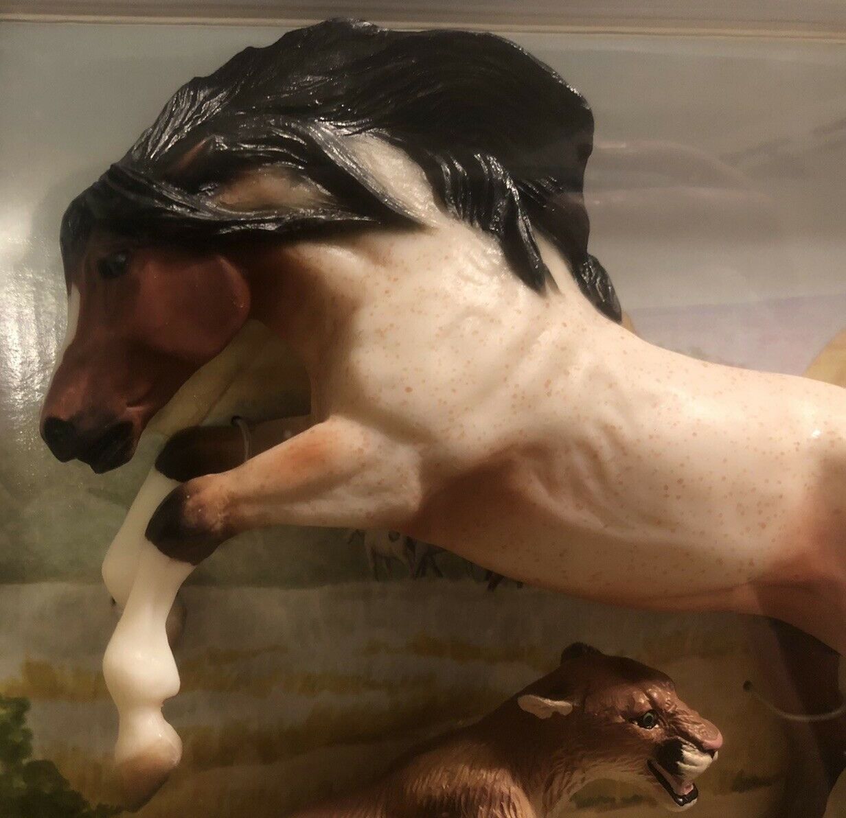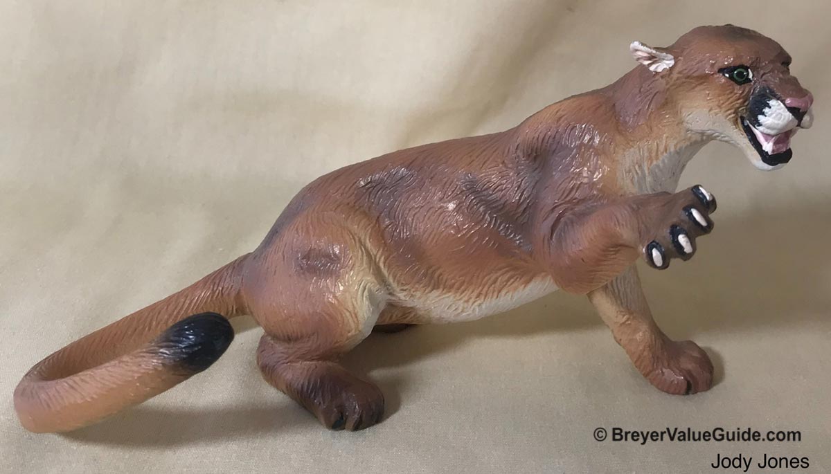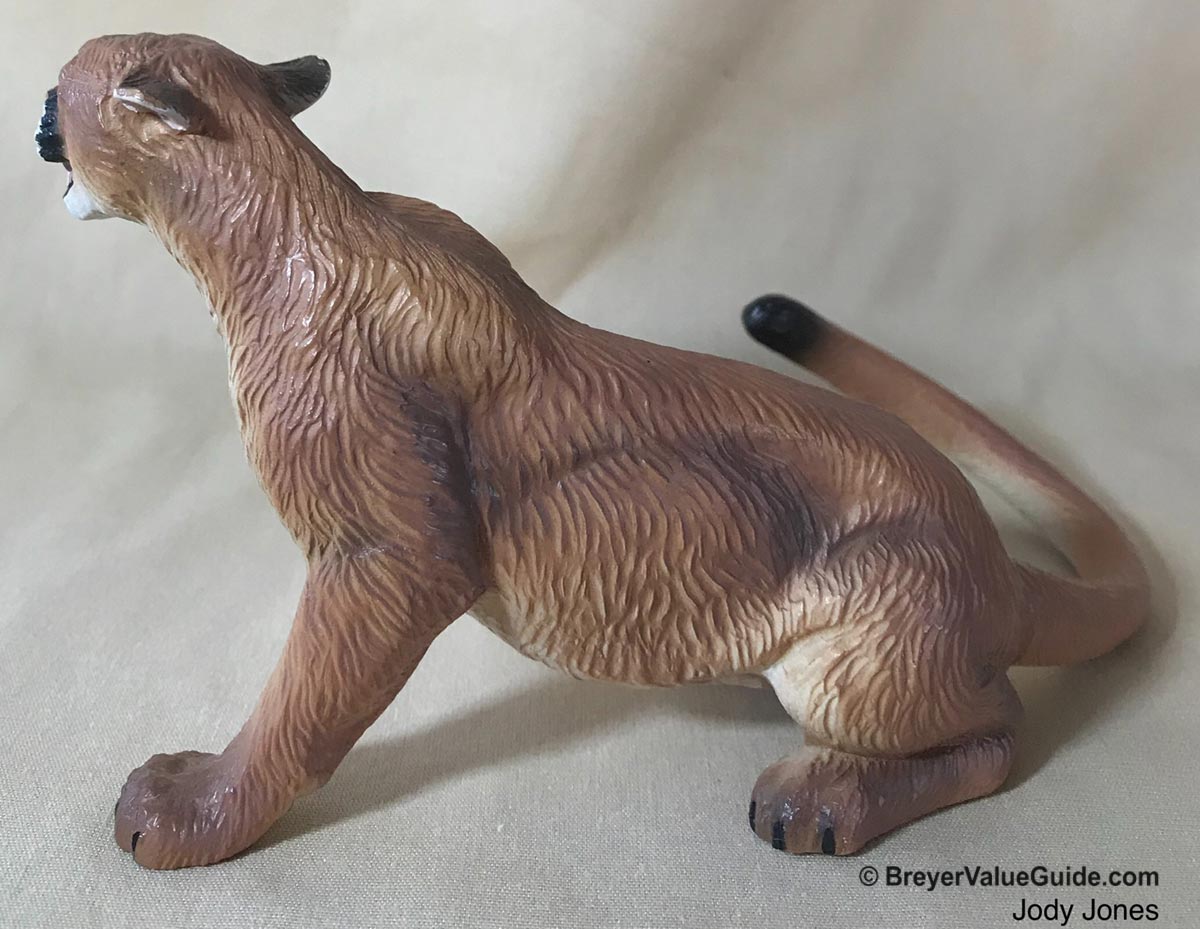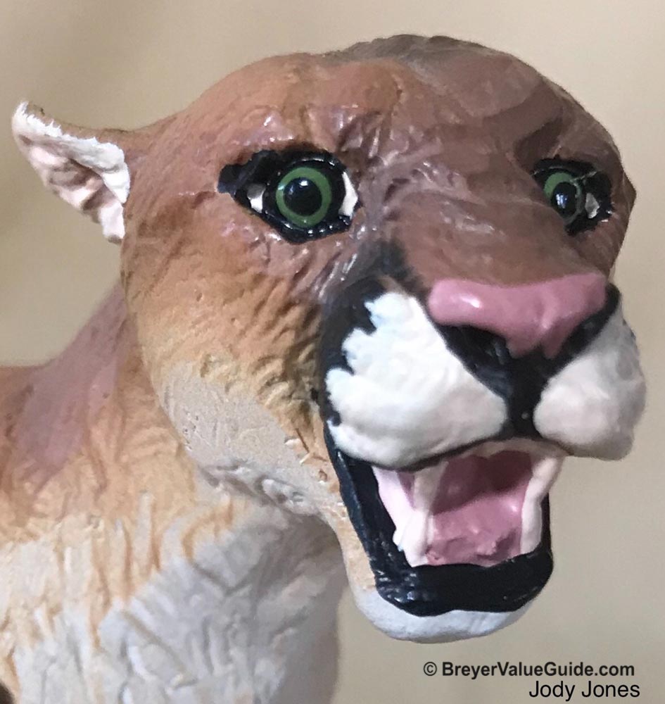 Cougar: Matte tan, white nails, almost black tail tip, painted white muzzle.