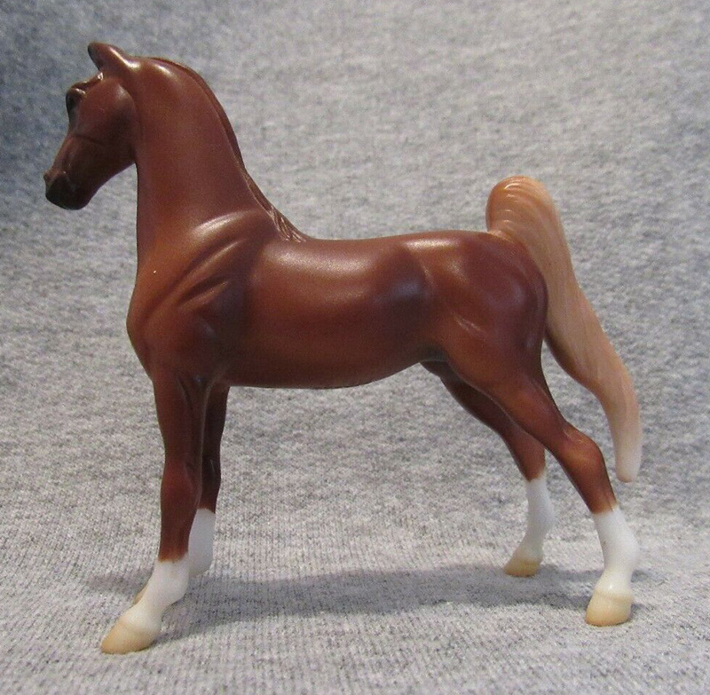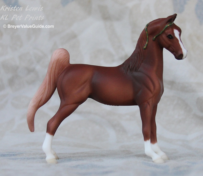 Matte liver chestnut; blaze; 4 socks; flaxen tail; gold on green ribbons – Target release Same as #5904