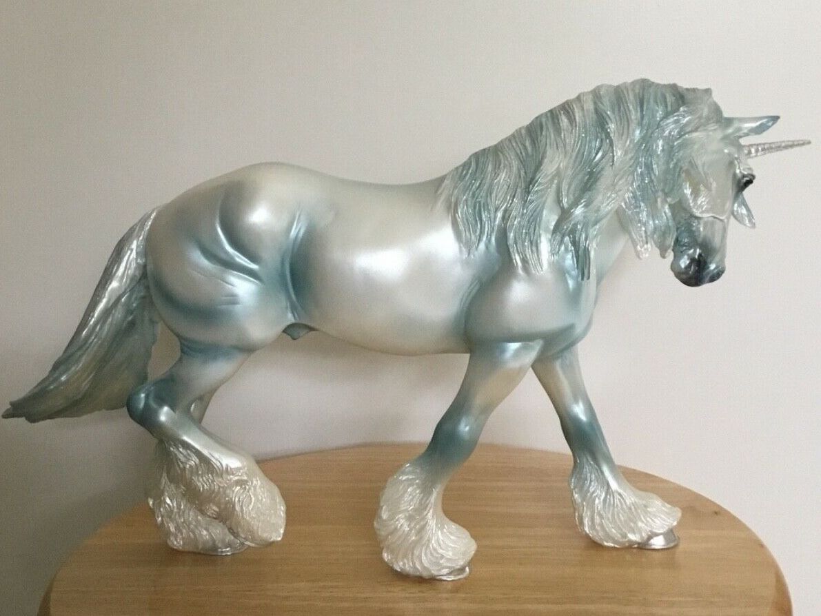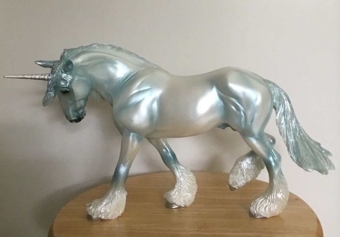 Pearly blue with silver horn and hooves, glitter in mane and tail, Web SR, 1/350