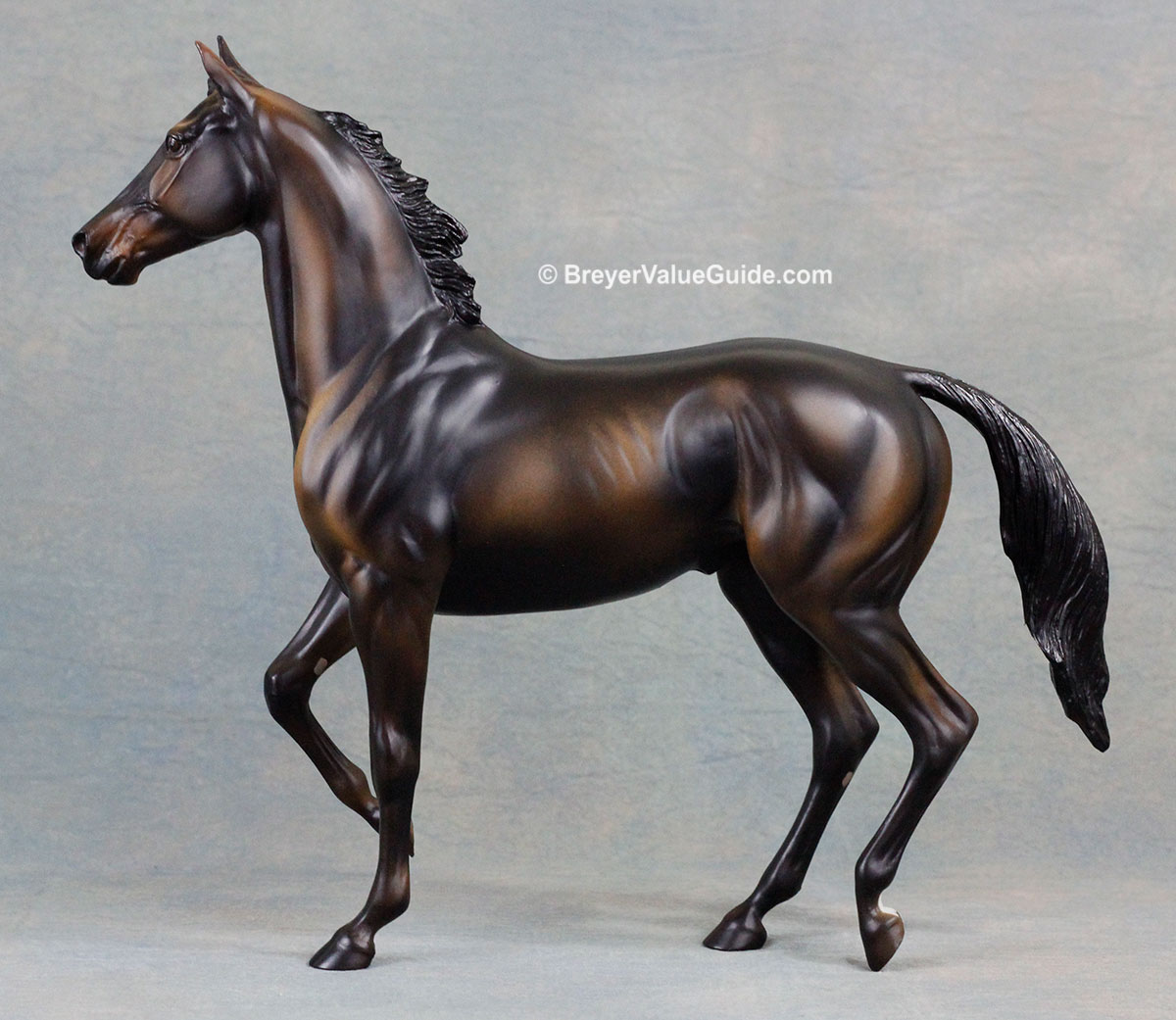Matte shaded dark bay; left hind heel spot – with rose blanket Was also available through QVC and included a hang tag and COA.