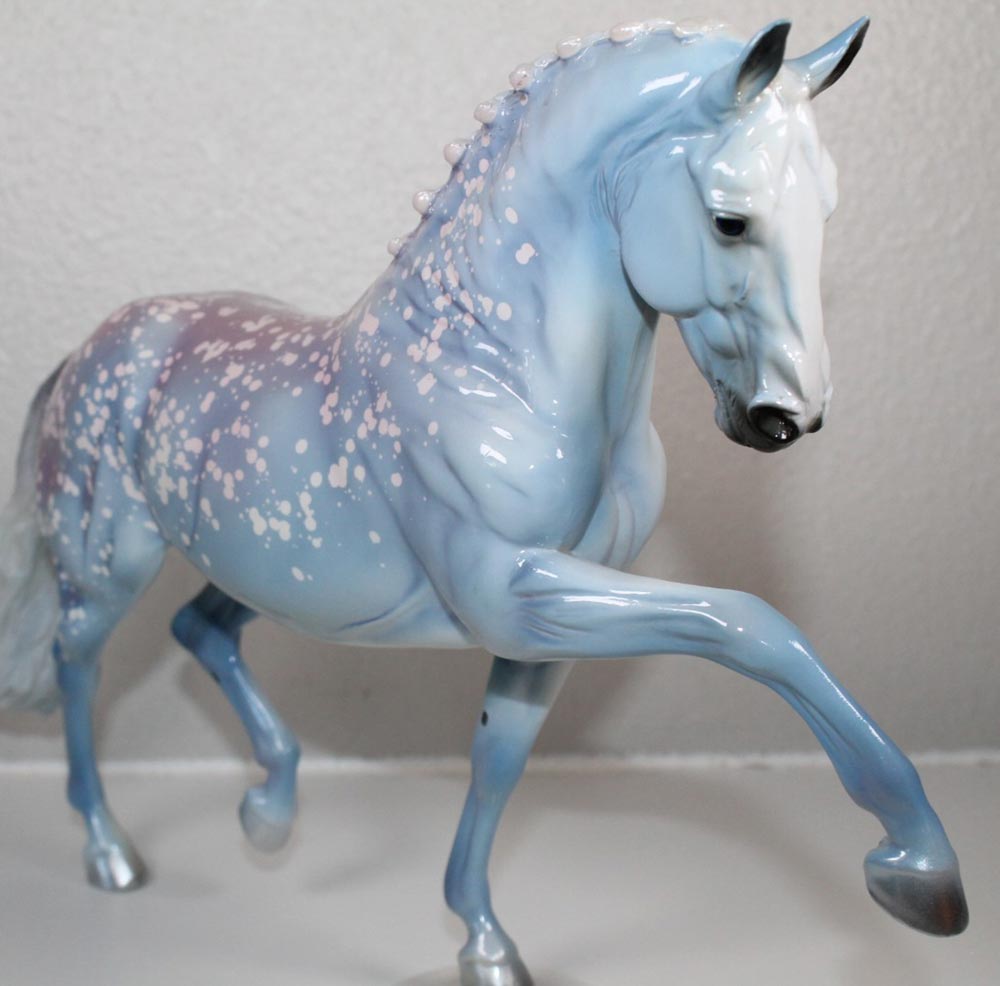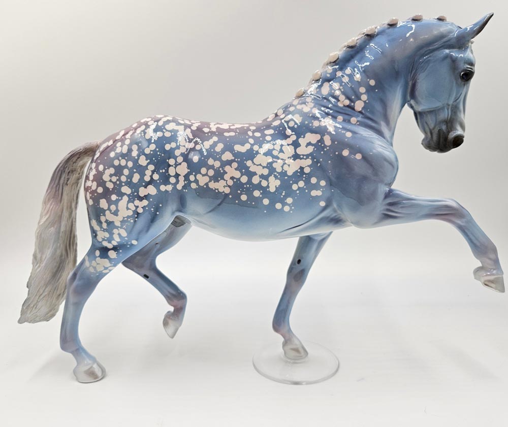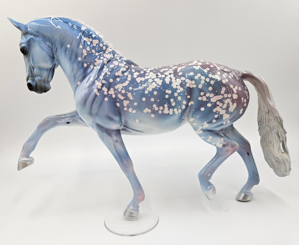 Glossy shaded blue/purple, splash dapple spots over back, silver hooves, BreyerFest SR, 1/634 Issue price: $80