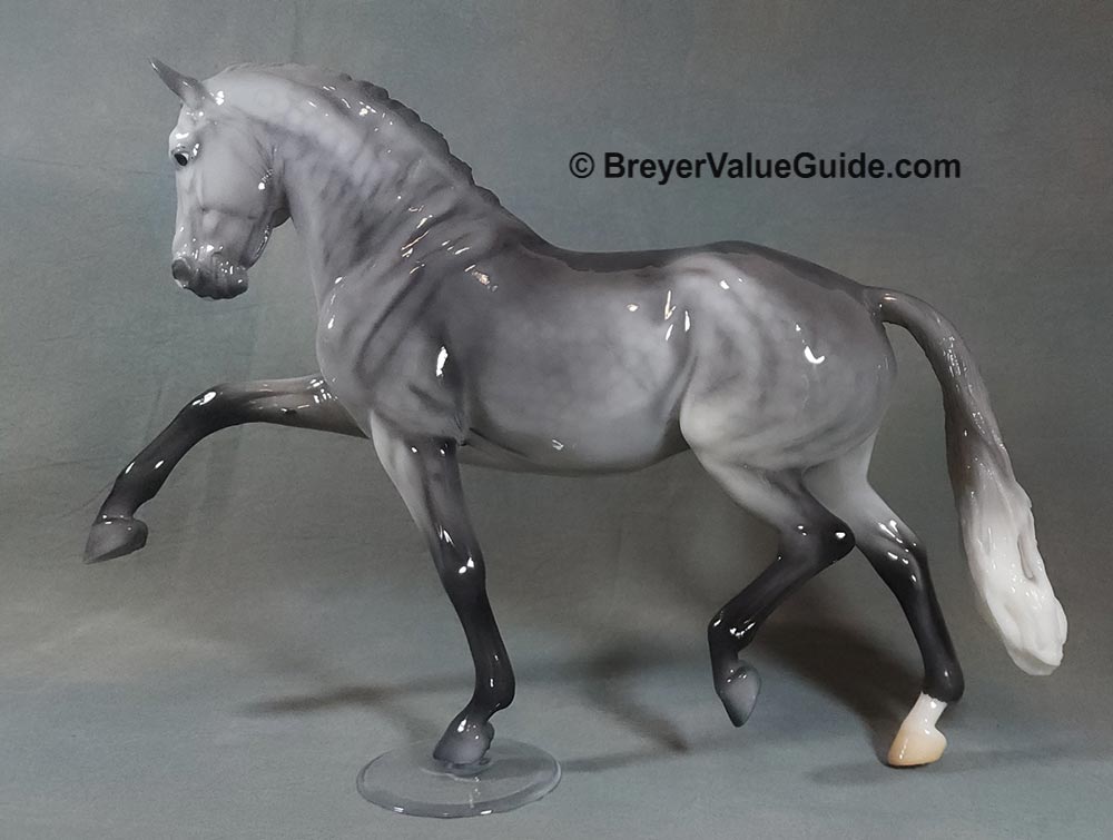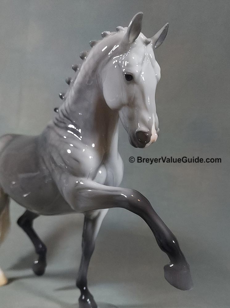 Glossy dapple grey, snip, 1 hind sock, BreyerFest SR, 1/384