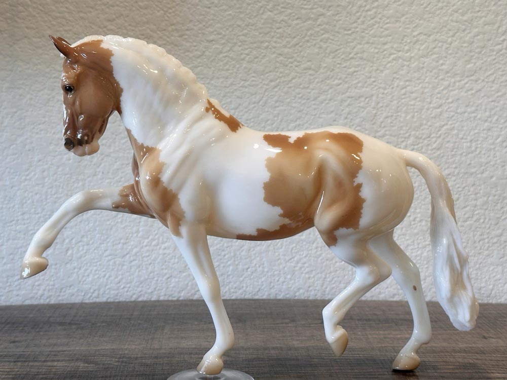 Glossy palomino tobiano, wide blaze over muzzle, white legs, BreyerFest SR, 1/384