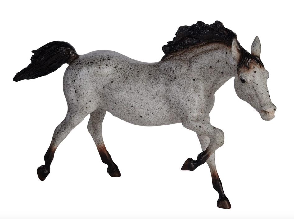 Matte blue roan, blue grey with dark splatter spots, Stallion has belly stamp, Vintage Club SR, 1/1200