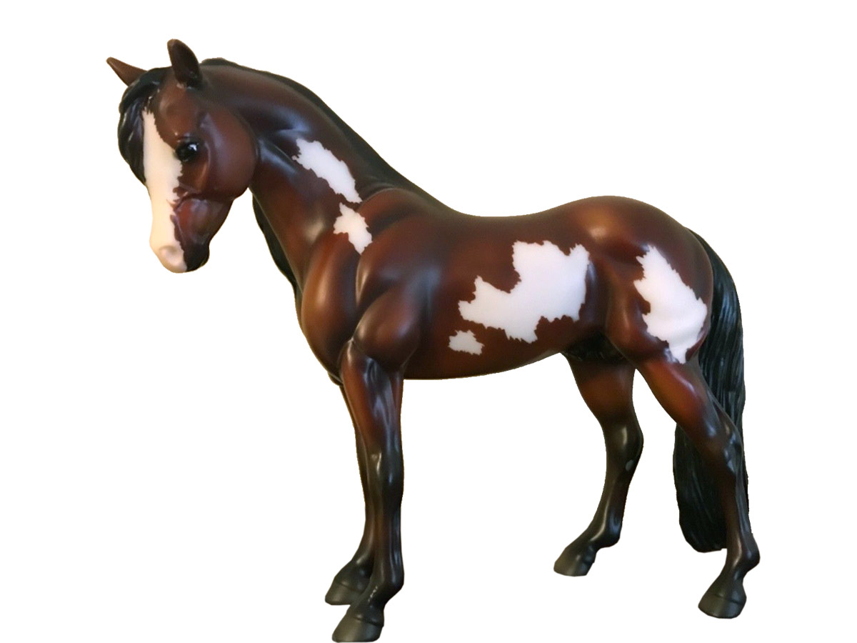 Dark bay pinto; wide blaze; BreyerFest Prize SR; 1/28