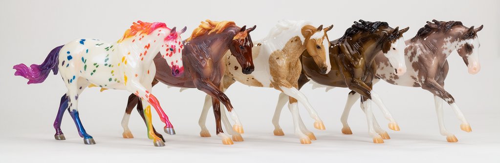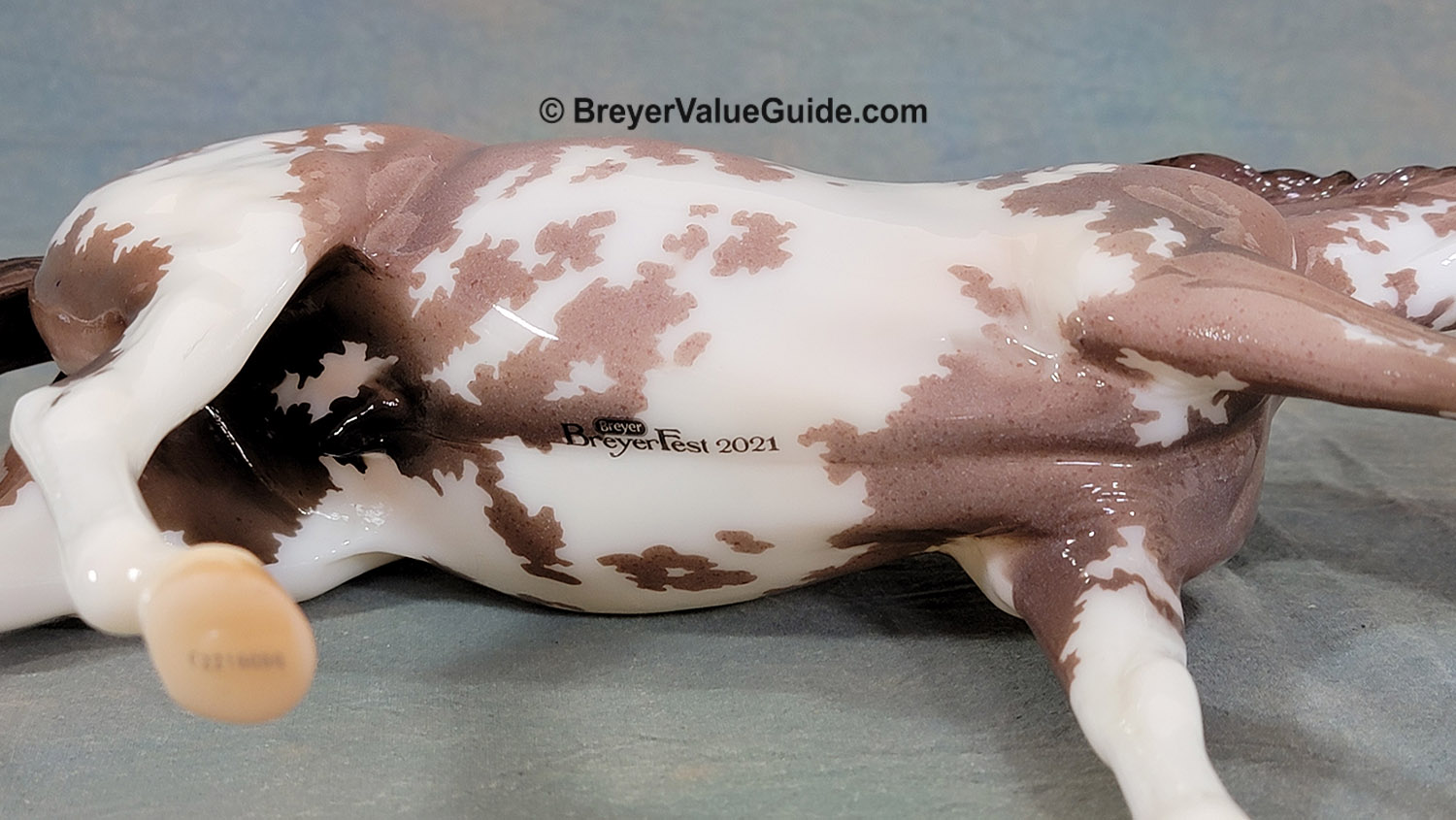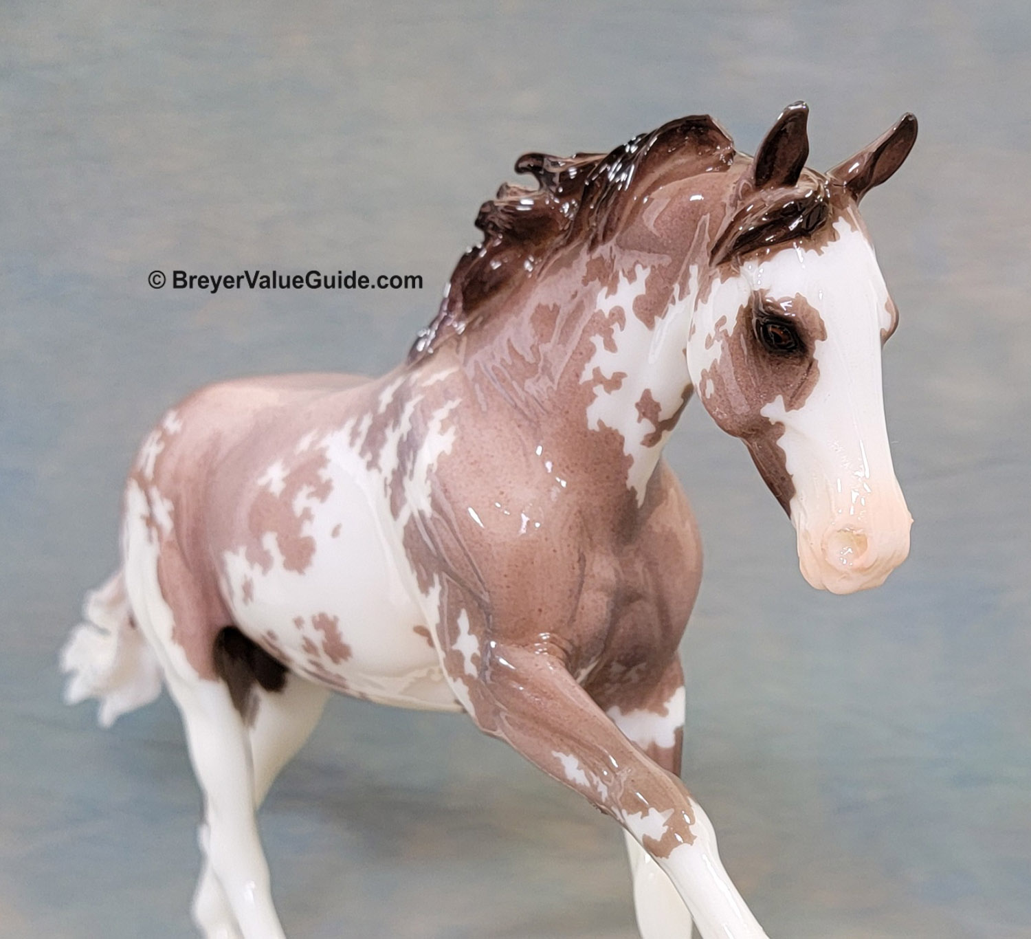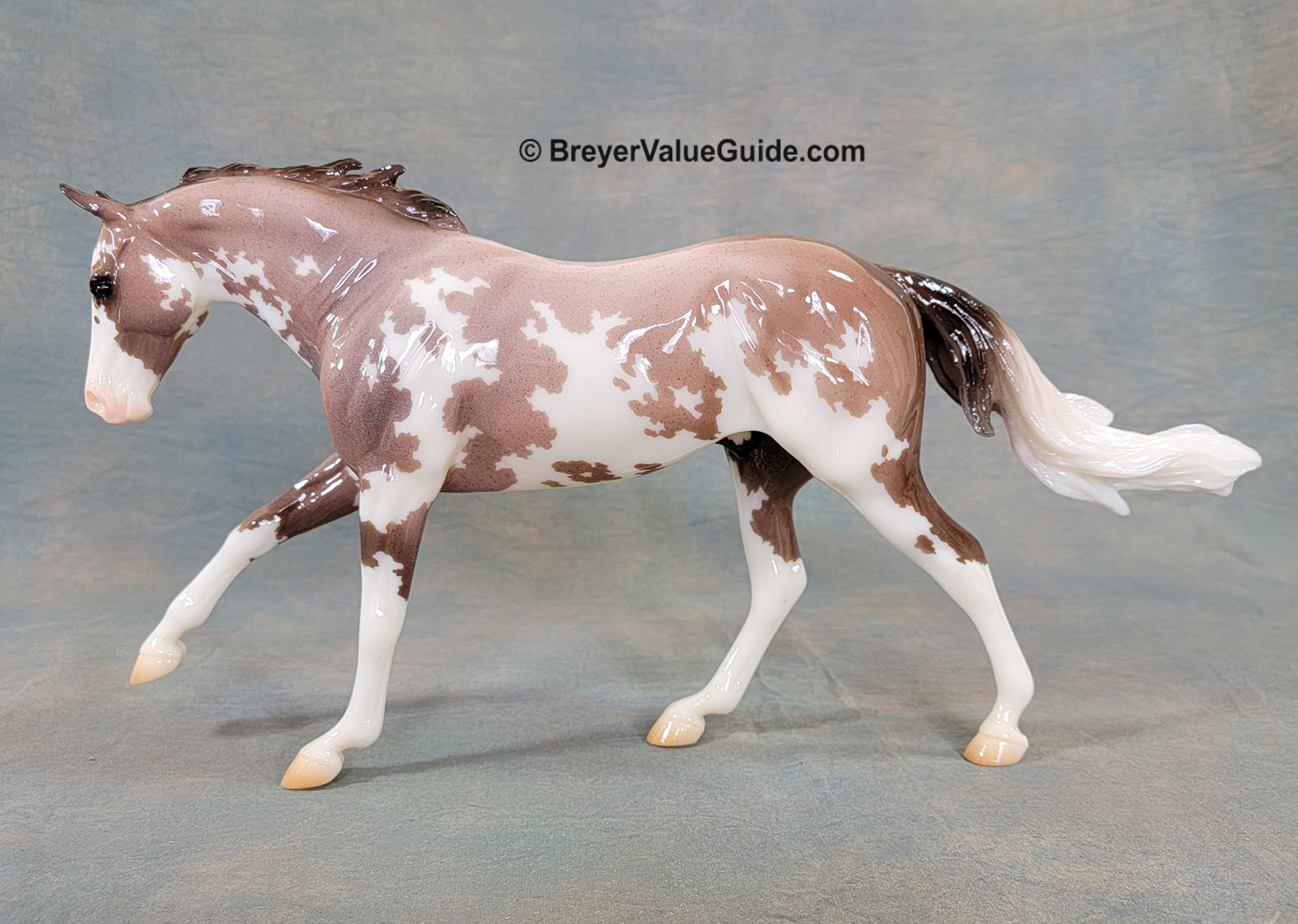 Glossy bay maximum sabino pinto, apron face, 4 stockings, BreyerFest SR, 1/325 glossy