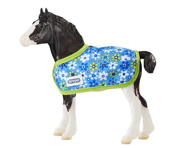 Matte black splash pinto; white legs; apron face; includes blanket and bracelet