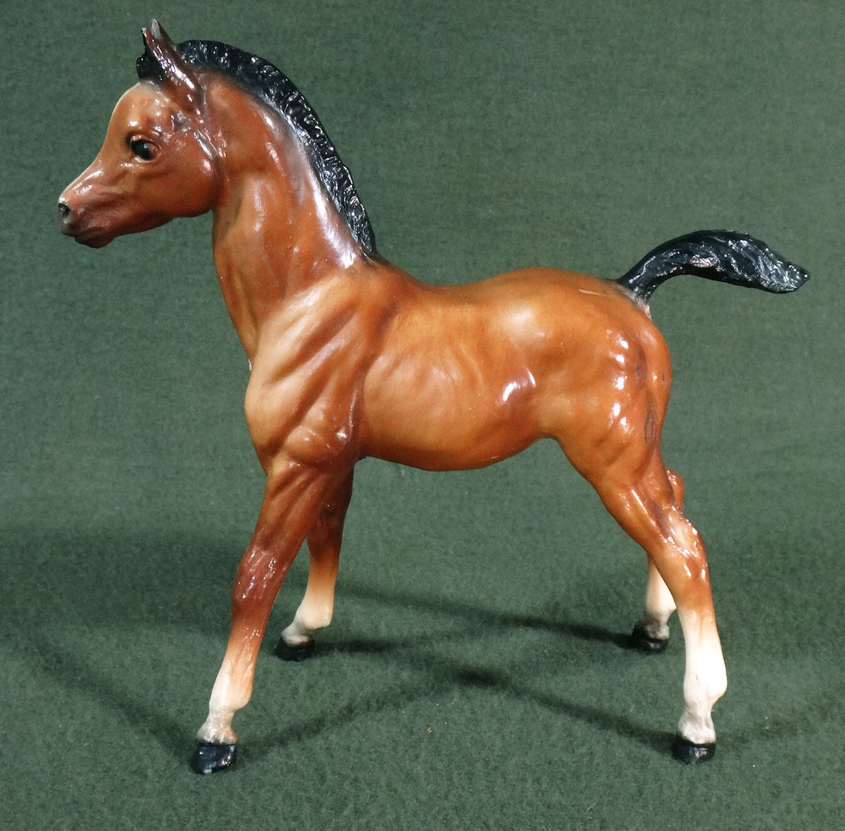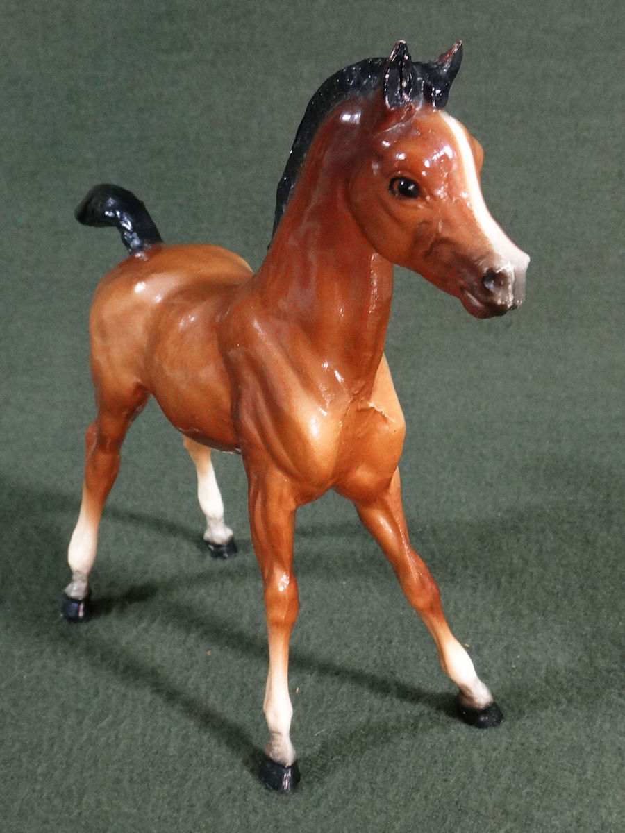 Glossy bay; narrow blaze; grey muzzle; 4 socks; black hooves