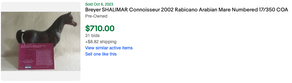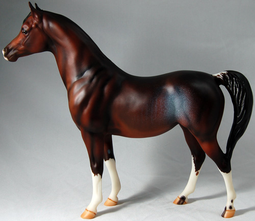 Semigloss dark bay rabicano; white ticking on flanks; white base of tail; 4 socks; Connoisseur SR; 1/350