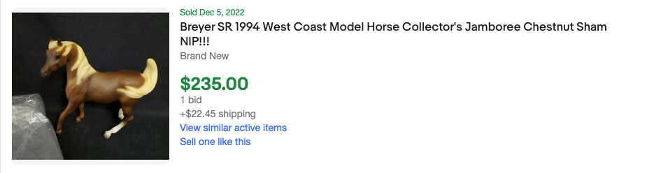 Matte chocolate sorrel; flaxen mane and tail; 2 hind socks; West Coast Model Horse Collector’s Jamboree SR; 1/550