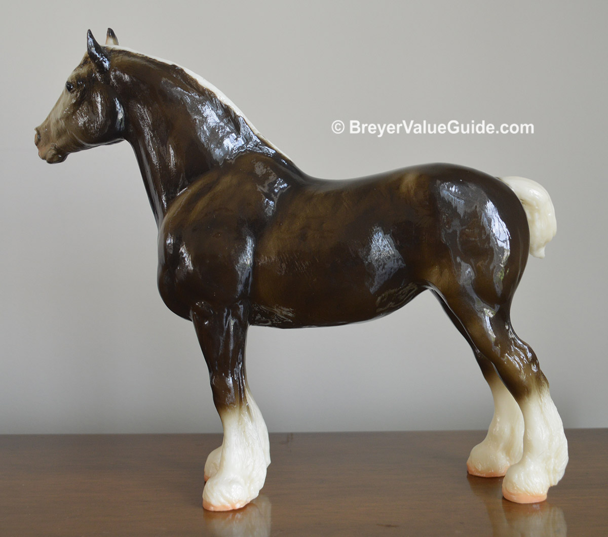 Glossy charcoal; bald face, pinked muzzle and ears, white mane and tail, 4 socks, pink hooves, BreyerFest SR; 1/450