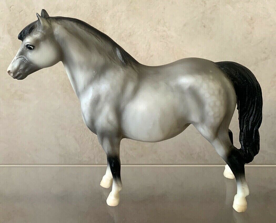 Matte grey; dapples; dark points; 4 socks; eye-whites
