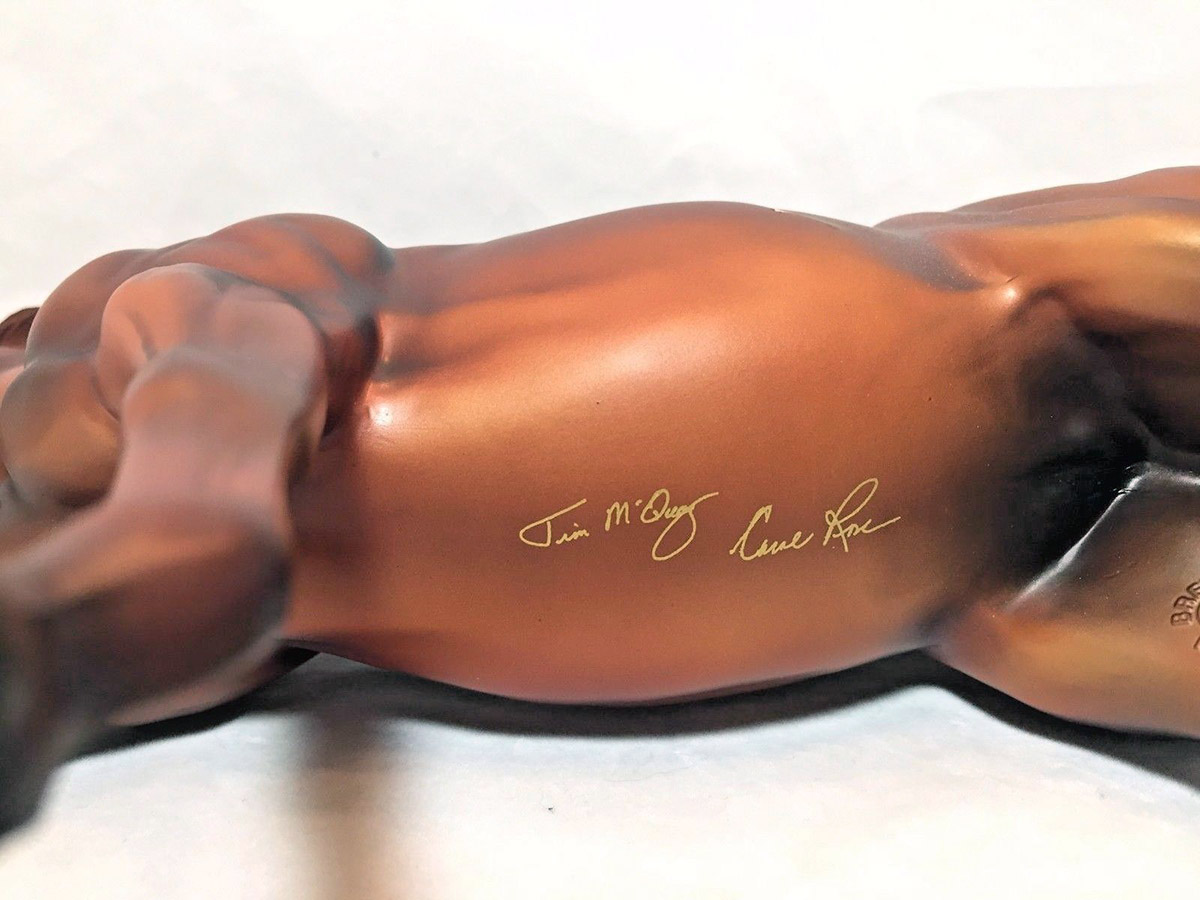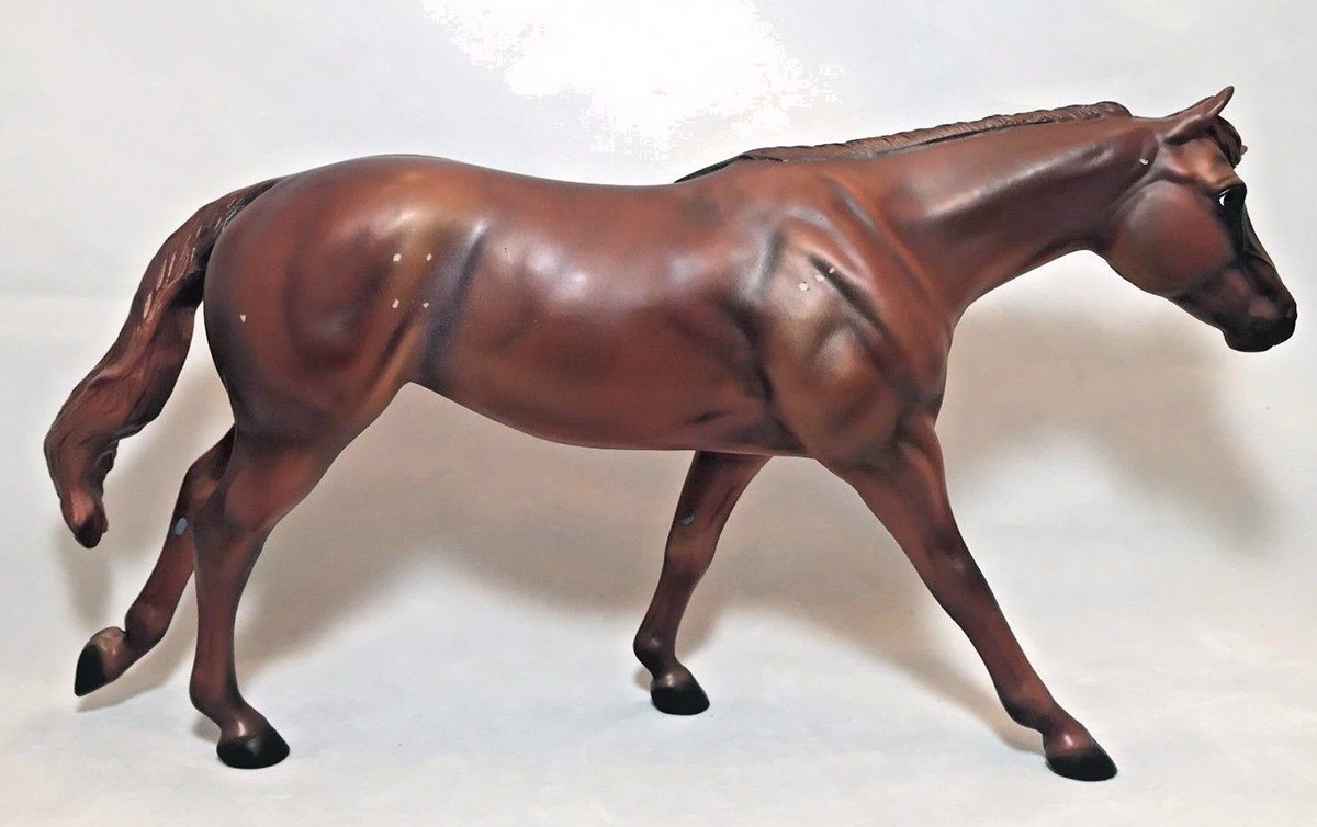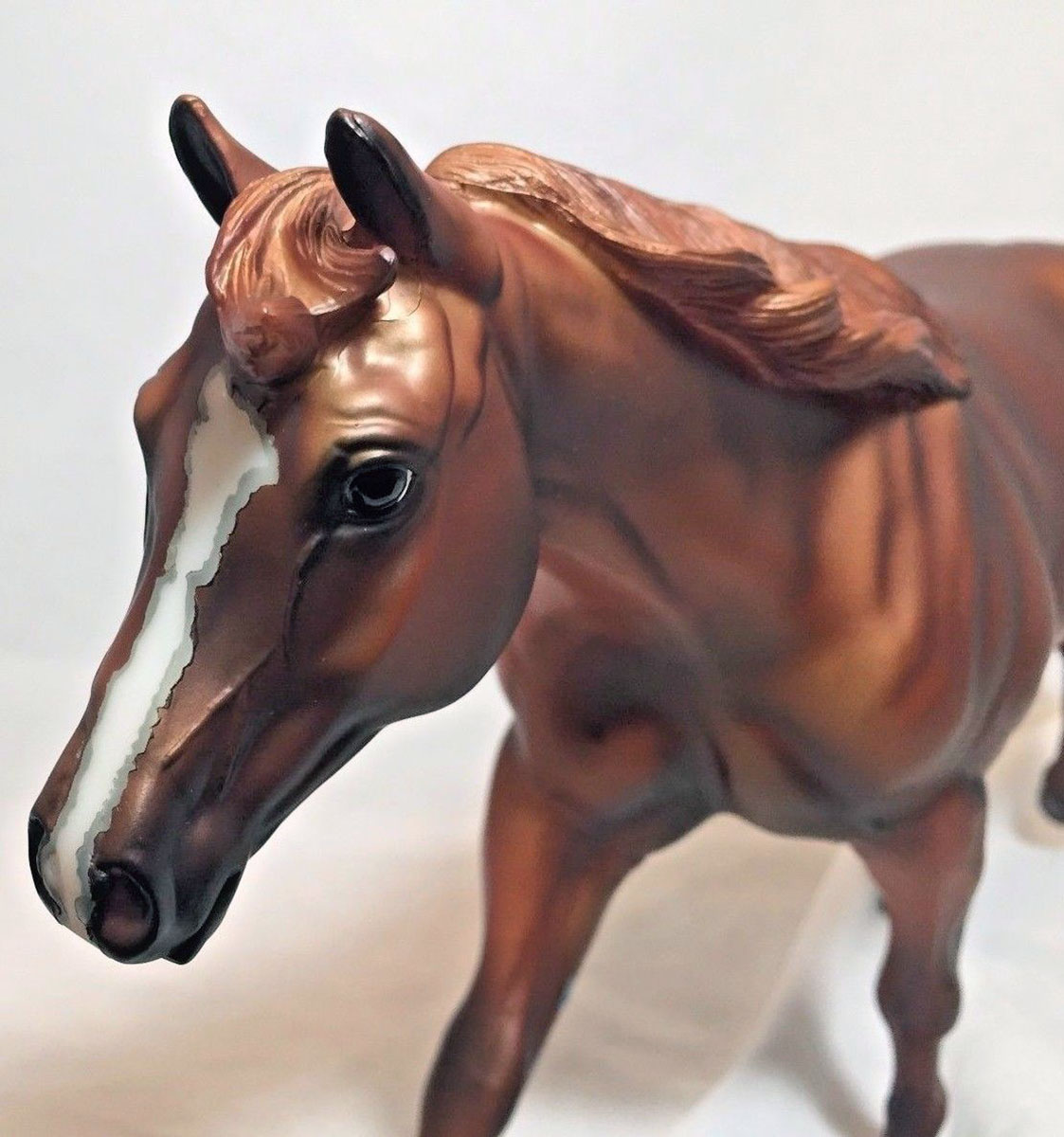 Semigloss copper chestnut; white “birdcatcher” spots; roaning; blaze with mapping; signatures in gold on belly; Lone Star Event SR; 1/200