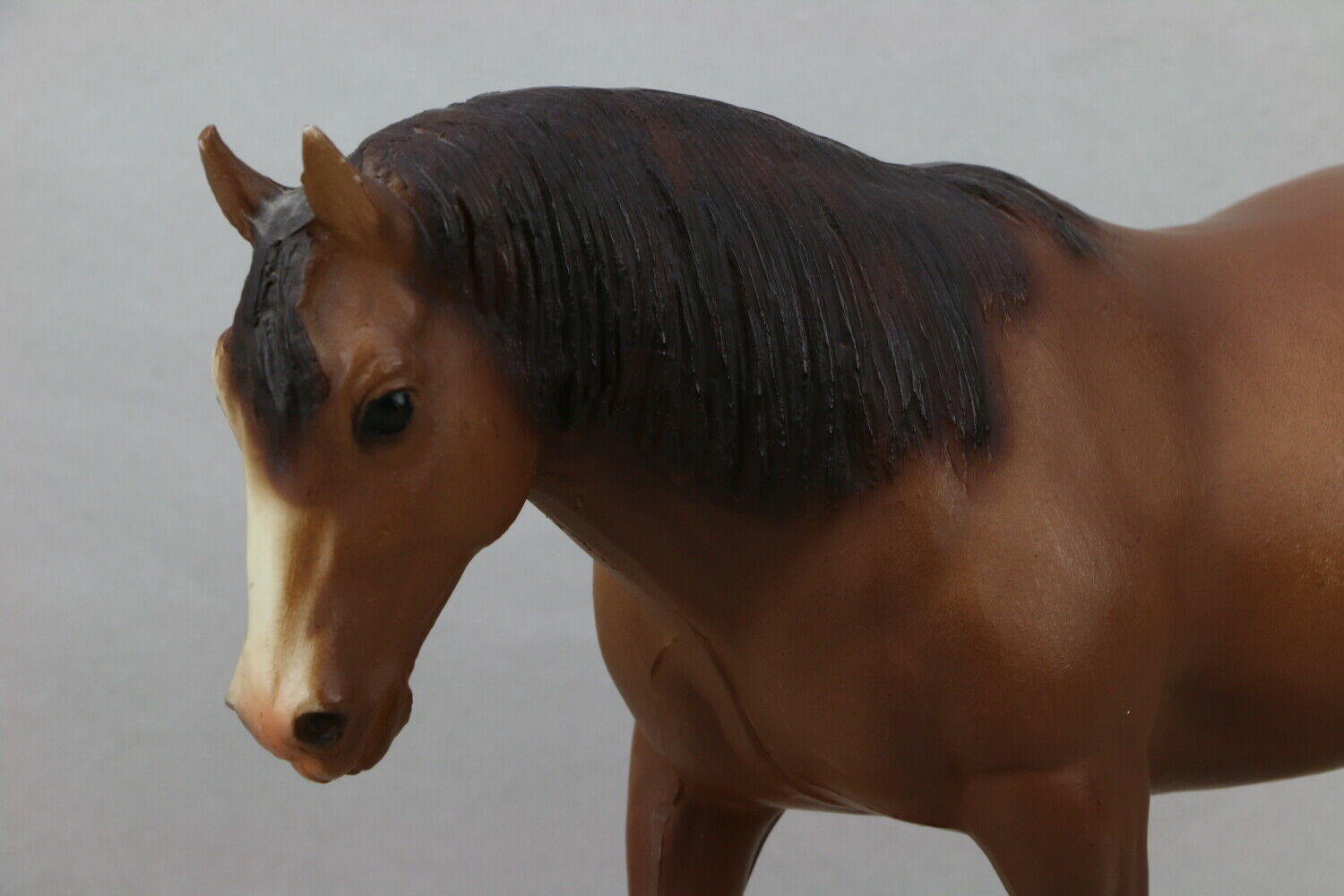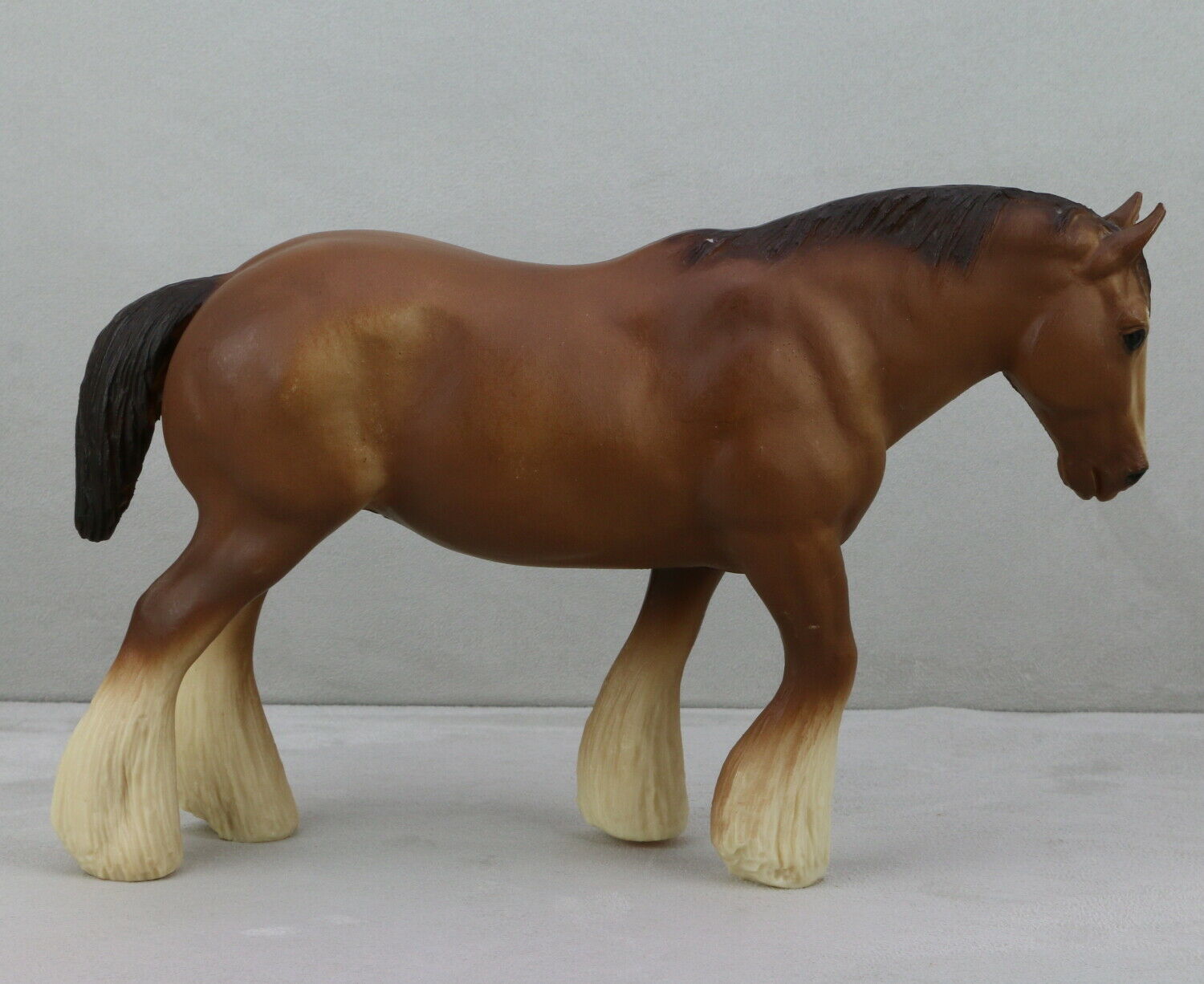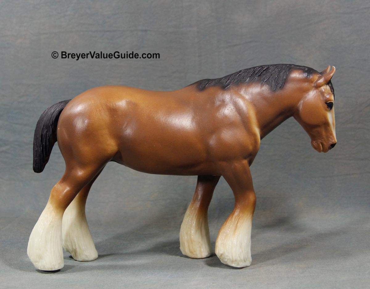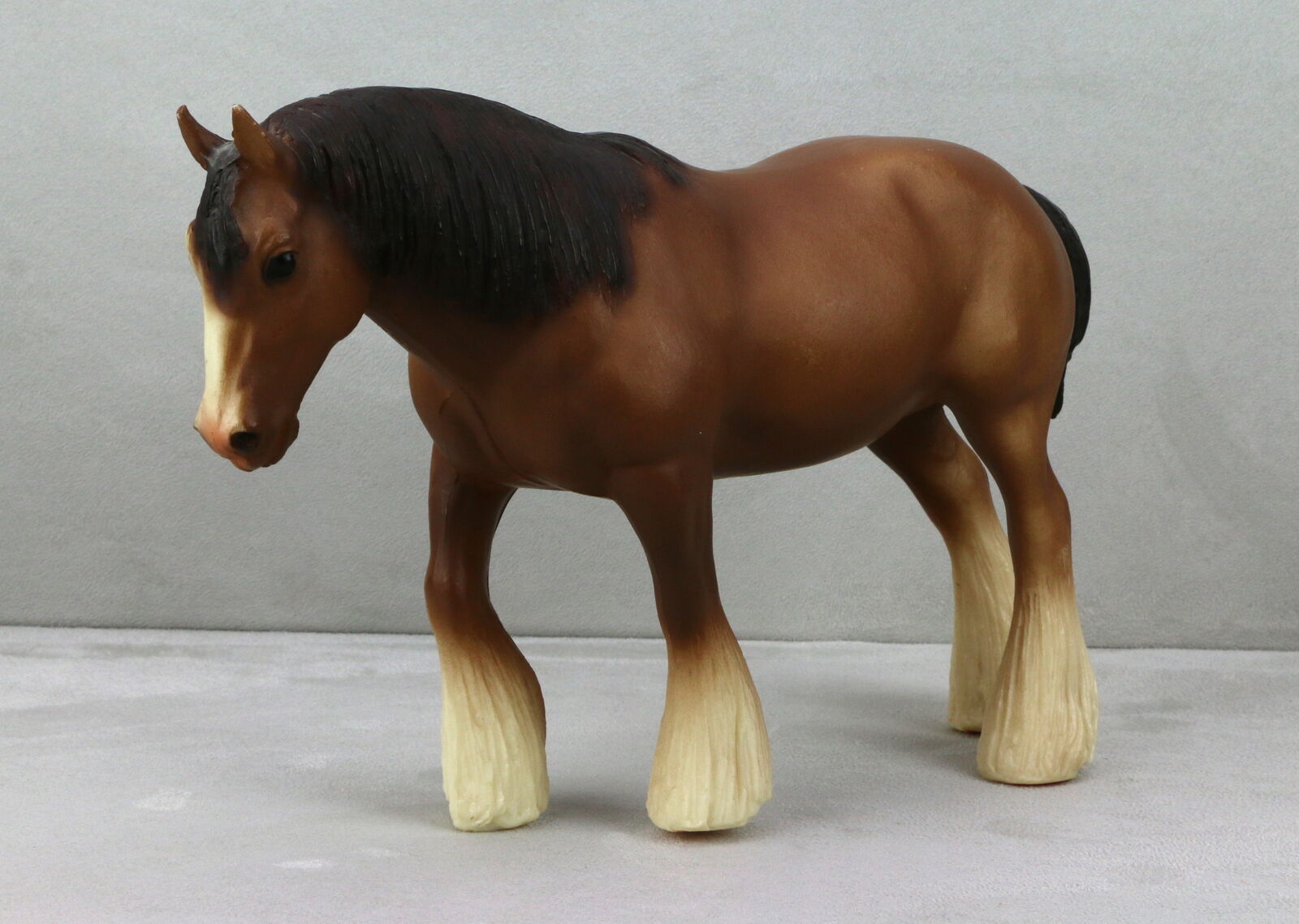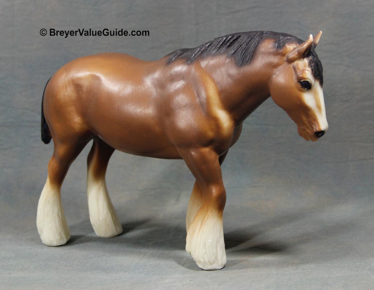 Matte or semigloss honey sorrel, bald face, charcoal or chestnut mane and tail, white feathers, white hooves