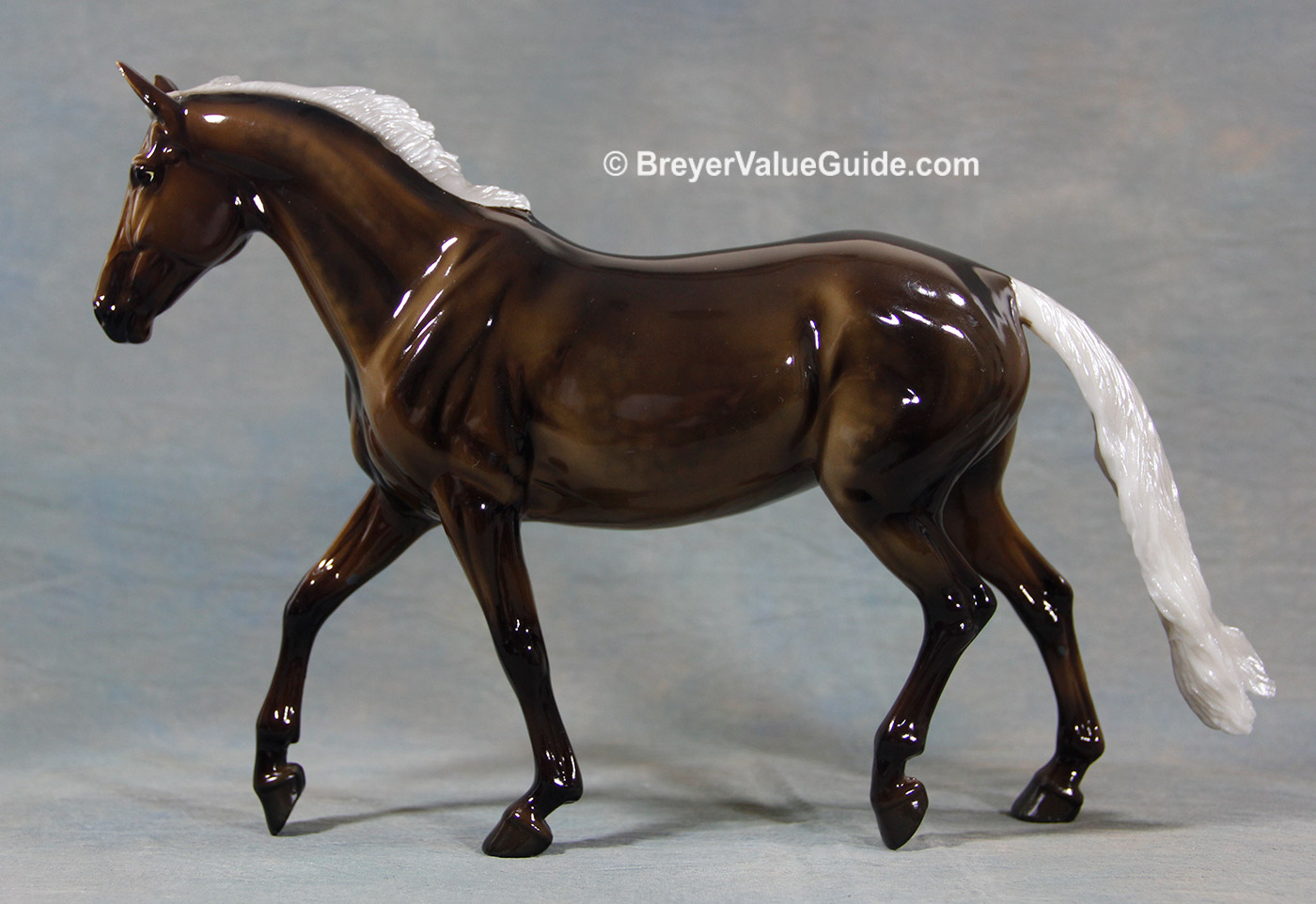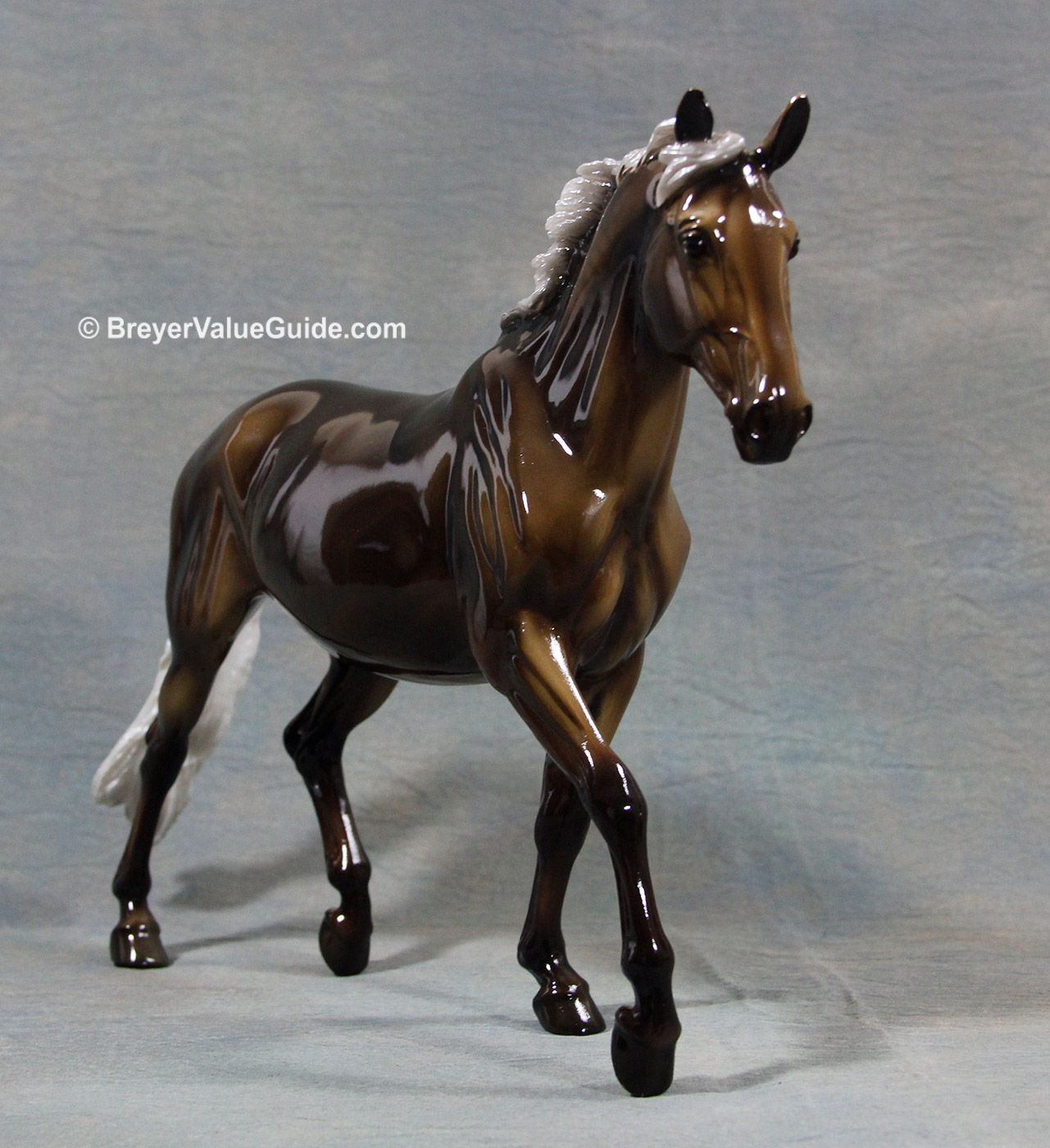 Glossy silver dapple black; shaded dark bay/sunburnt black; dapples; no white; “BreyerFest 2020” stamped on belly; BreyerFest SR; 1/325
