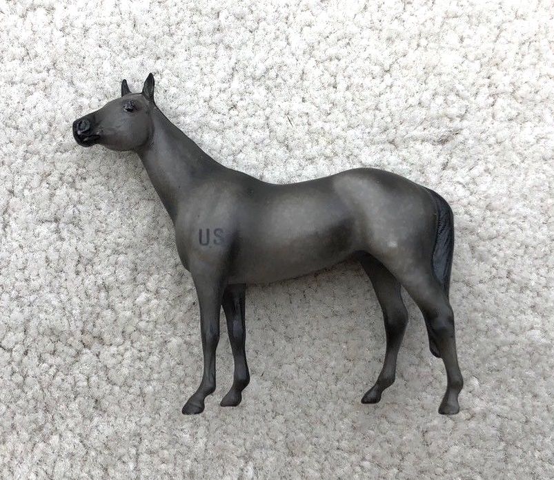 Matte steel grey; resist dapples; “US” brand on left shoulder; black points; Spirit Collection