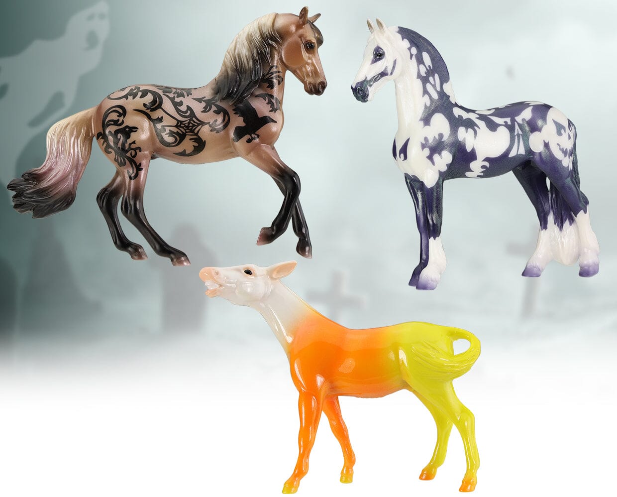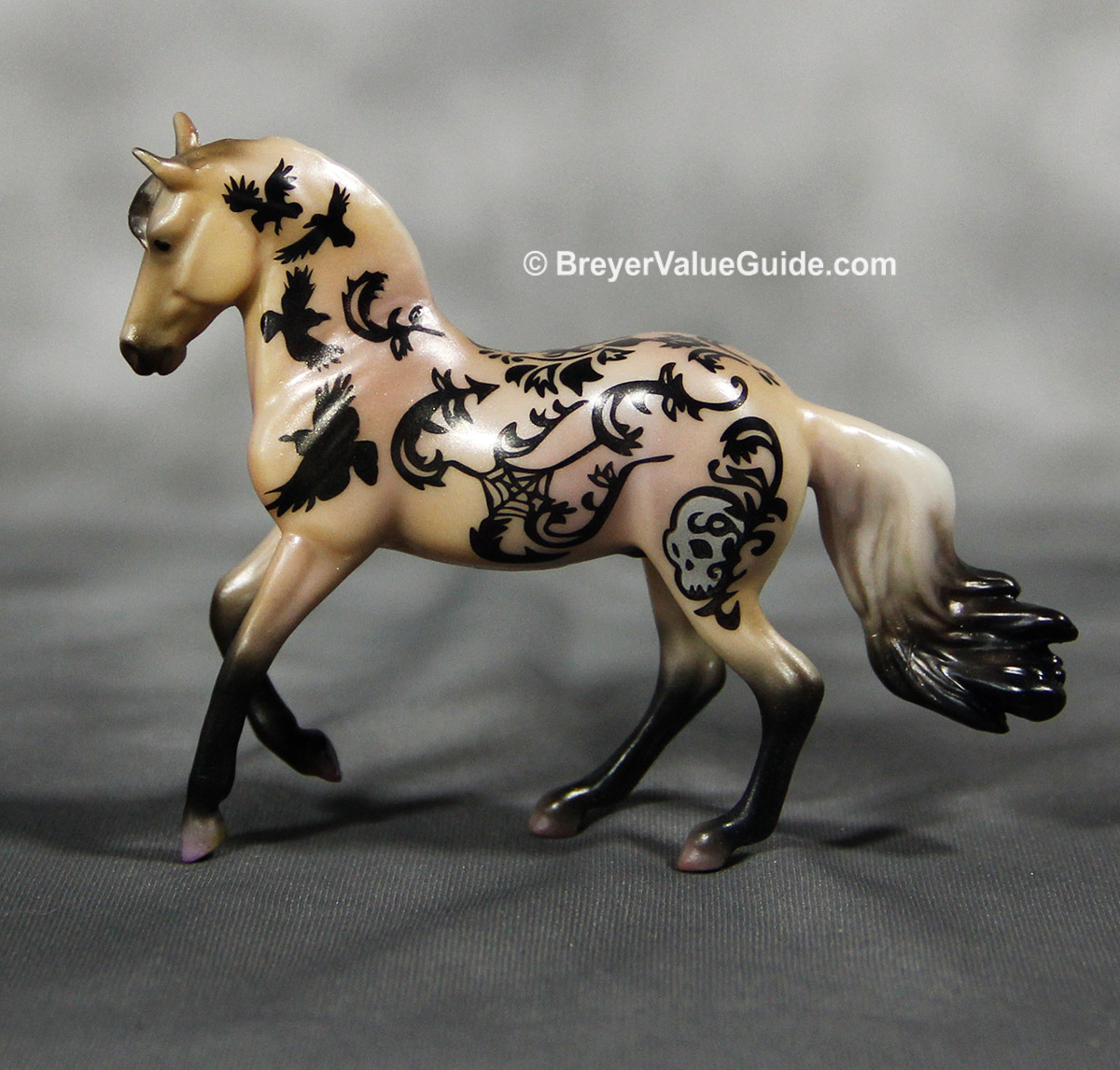 Mini Nevermore – Pearly mauve buckskin with black ravens and spiderwebs, Halloween SR Blind Bag