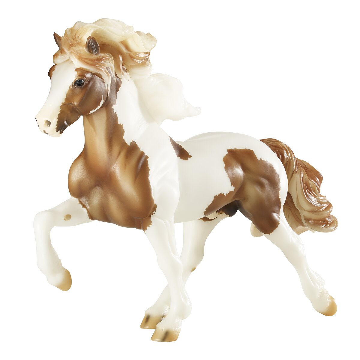 Matte red run pinto, wide blaze over muzzle, white legs, striped hooves