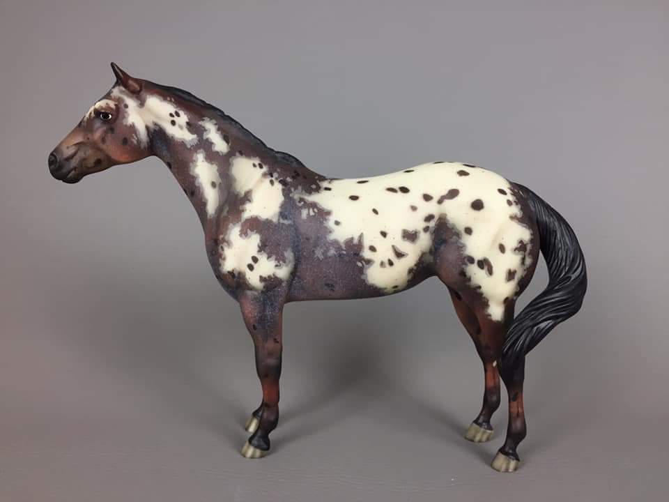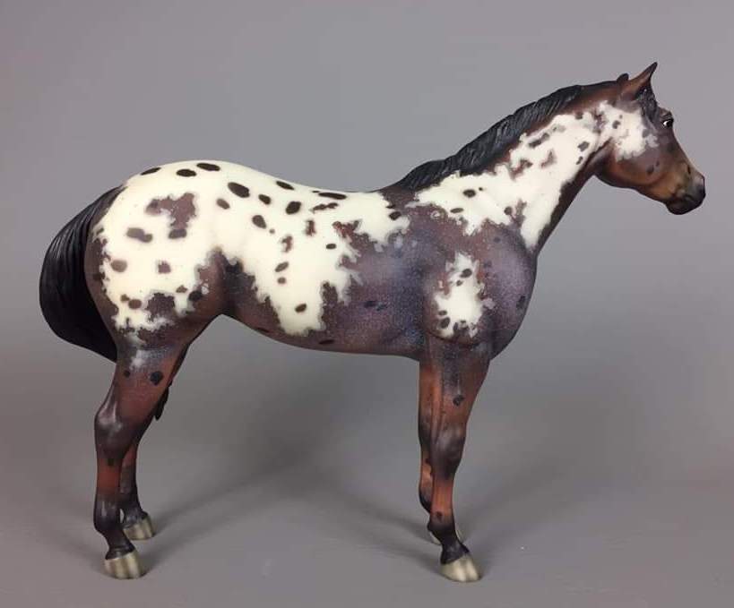 Matte bay roan leopard appaloosa; no socks; striped hooves; swish tail; BreyerFest SR; 1/1150