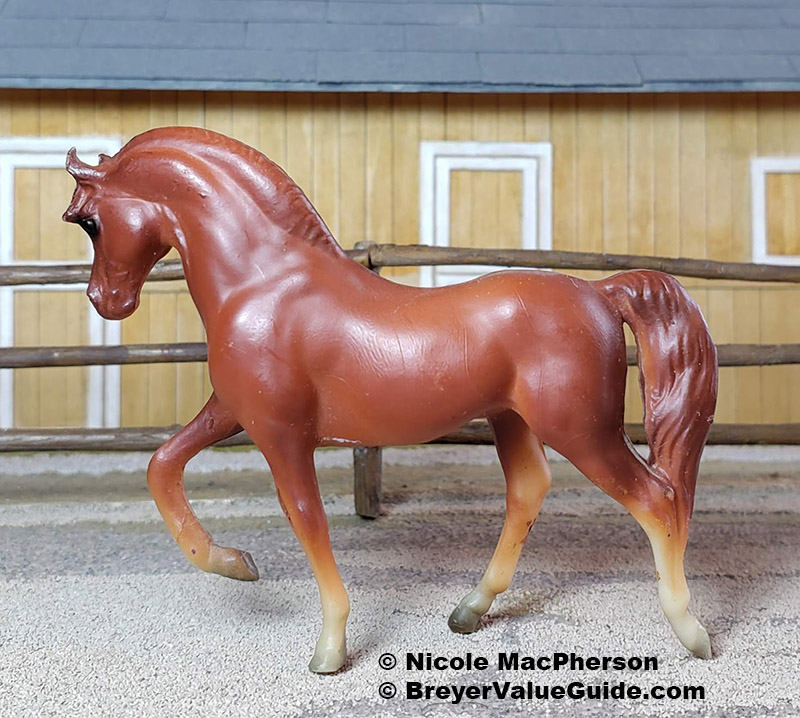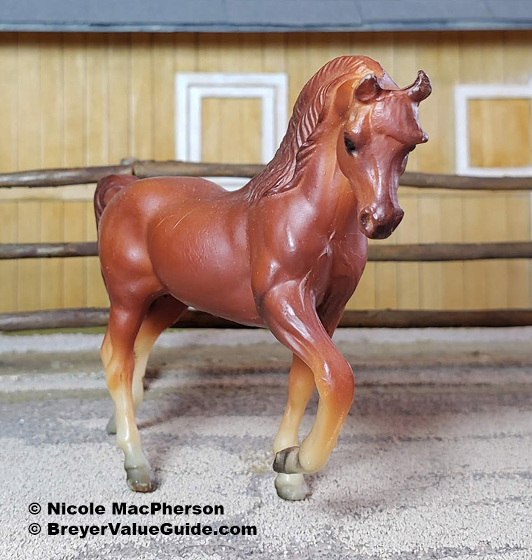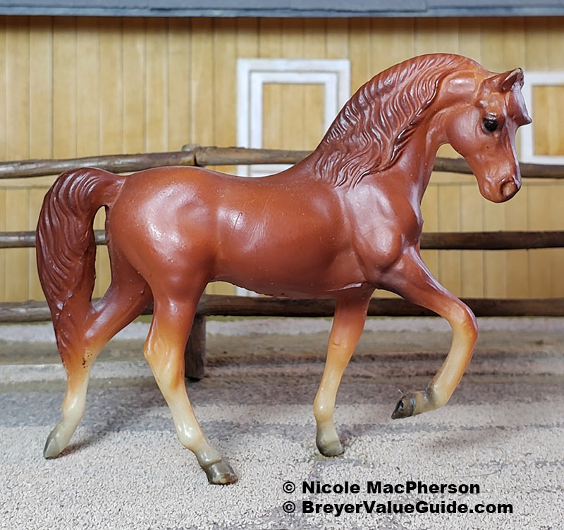 Matte red chestnut; solid face; 4 socks; Sears SR