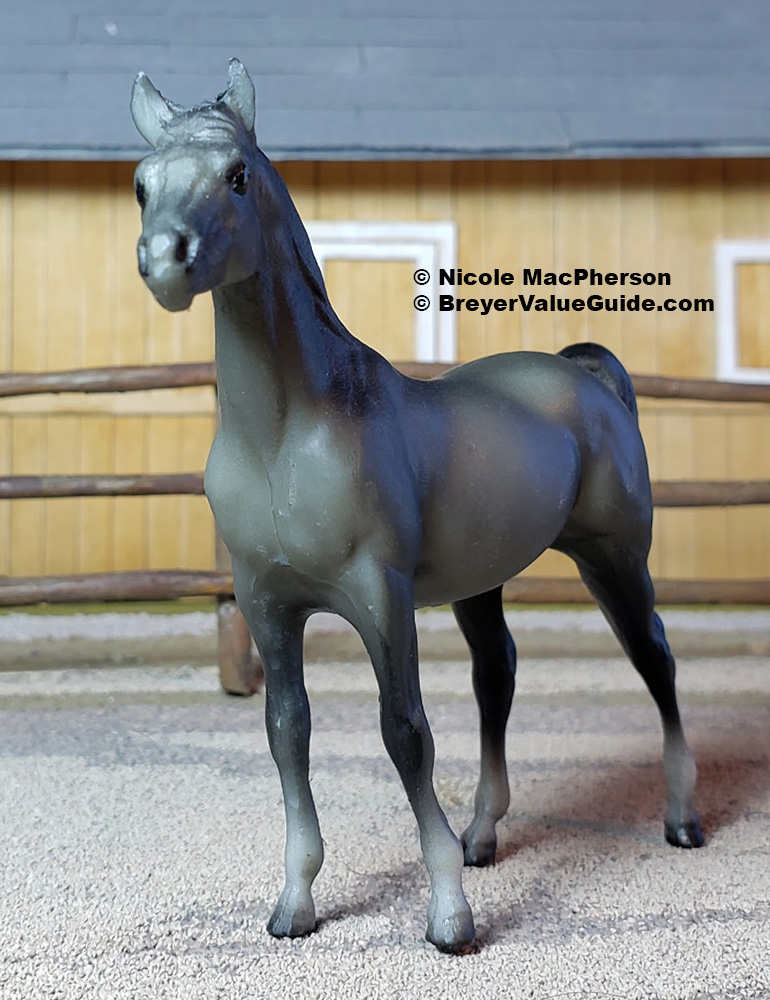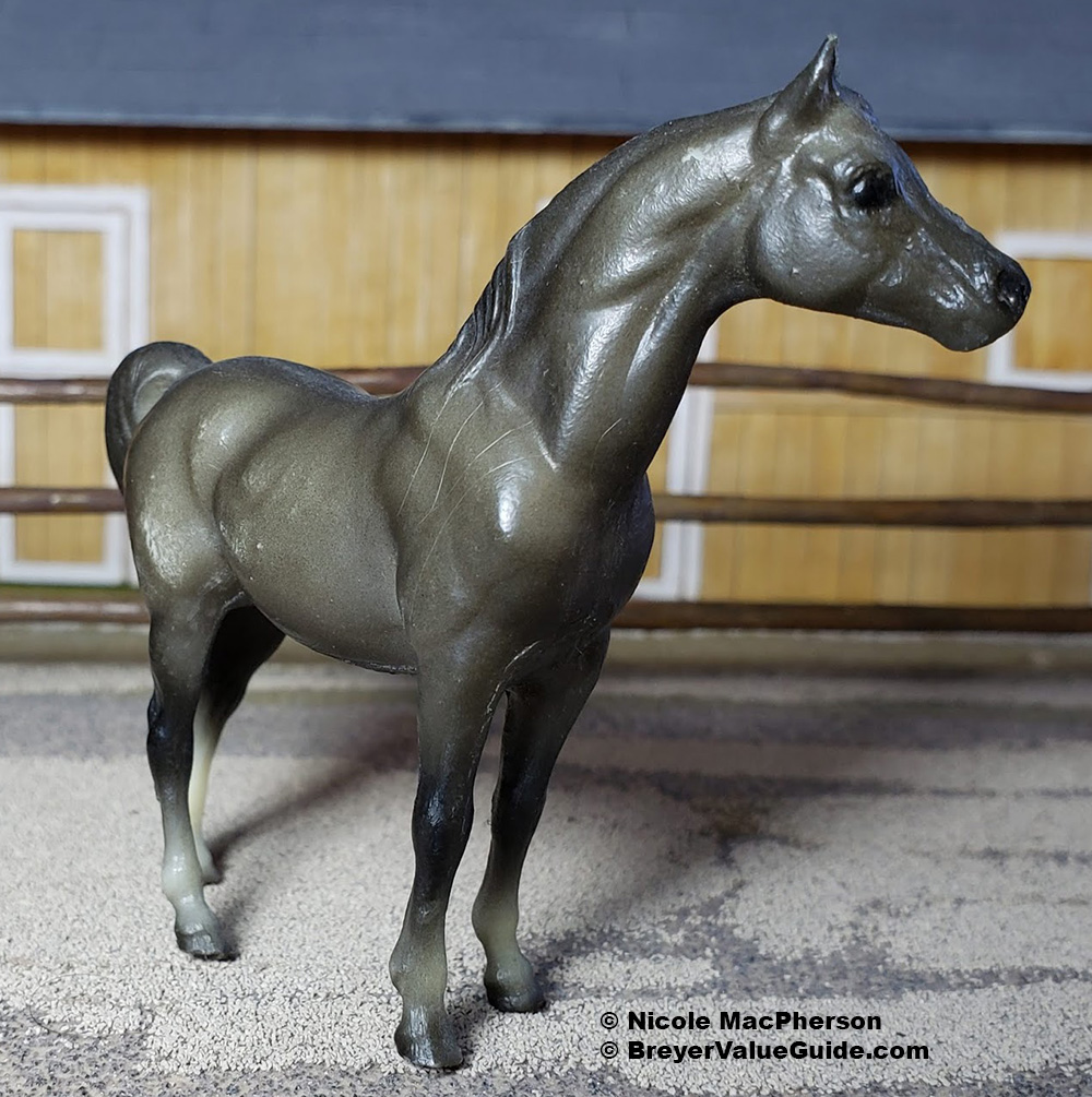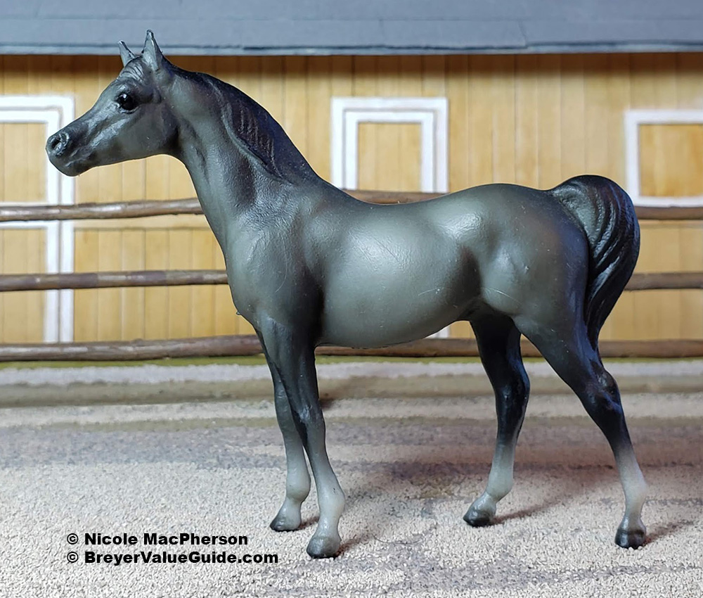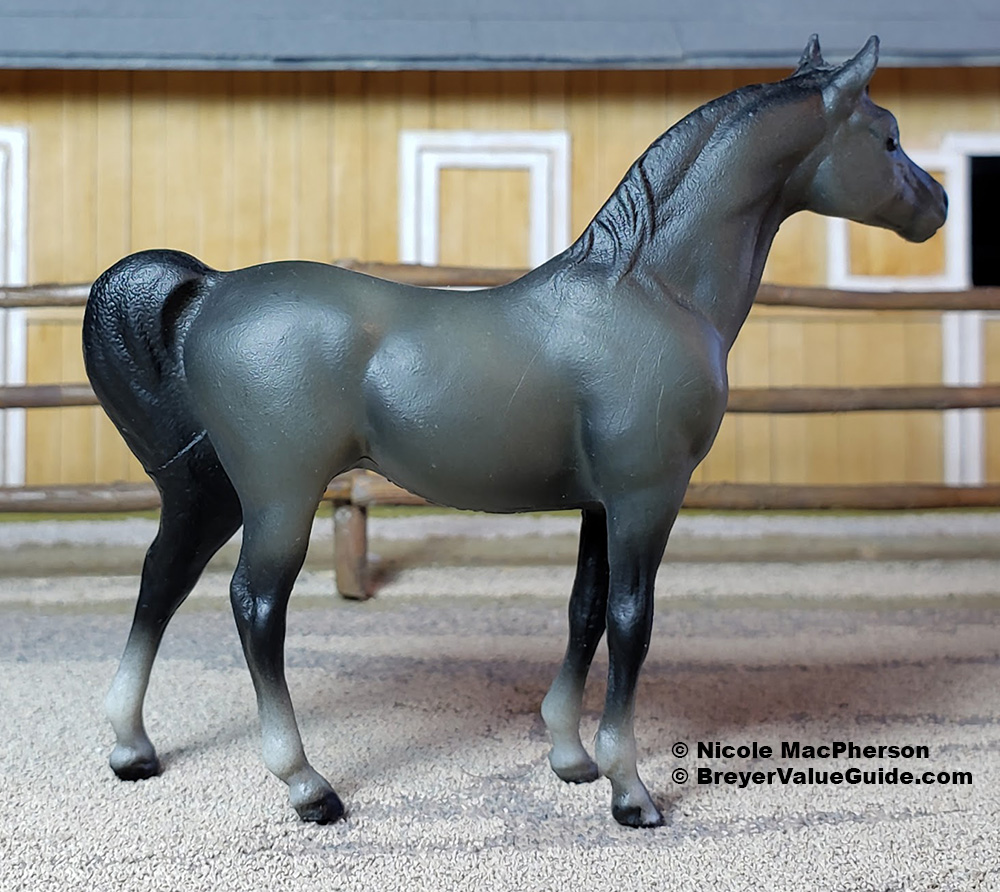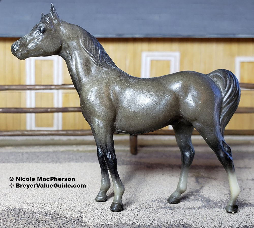 Matte to semigloss dark grey; black mane and tail; varied socks; Sears SR