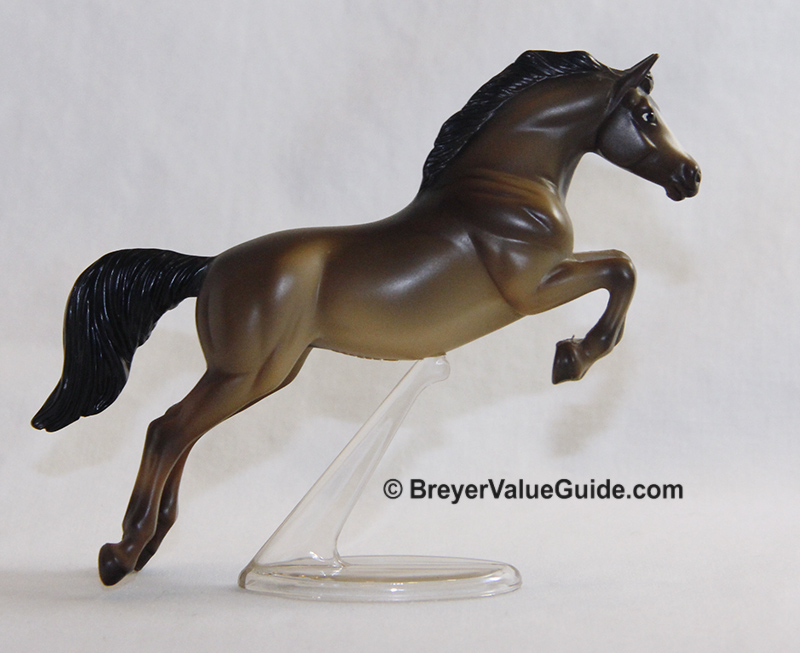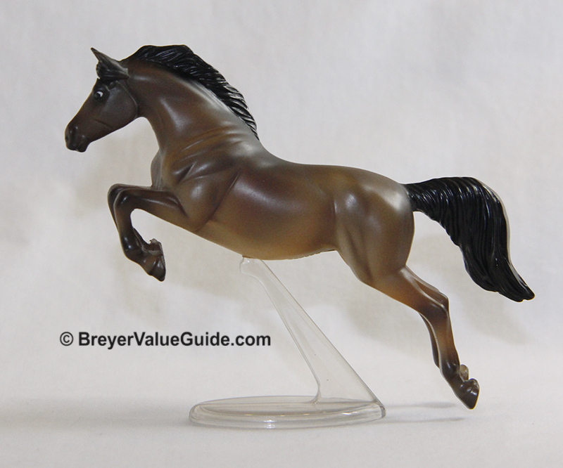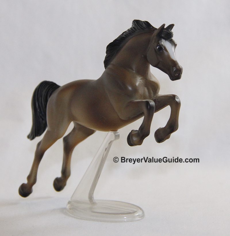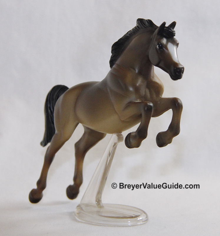 Matte shaded light bay; black mane and tail; elongated star; Kmart release