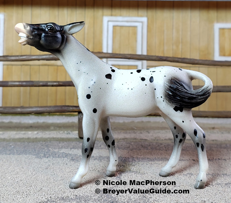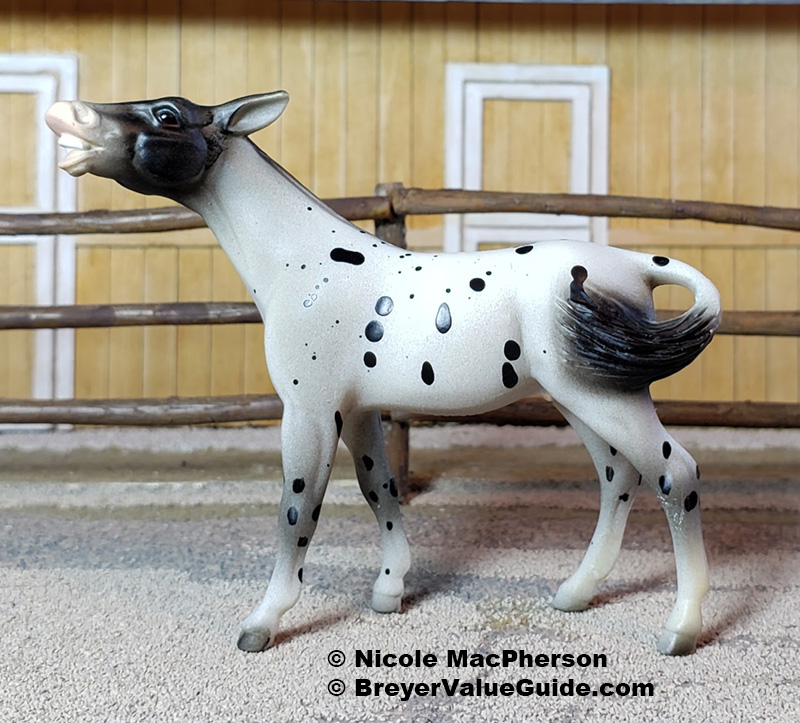 Matte black leopard appaloosa; shaded head and tail; black points; similar to #5609