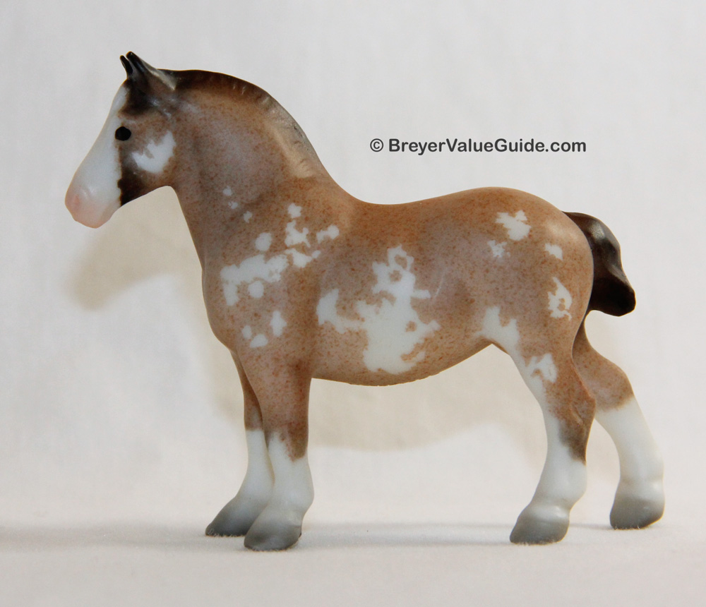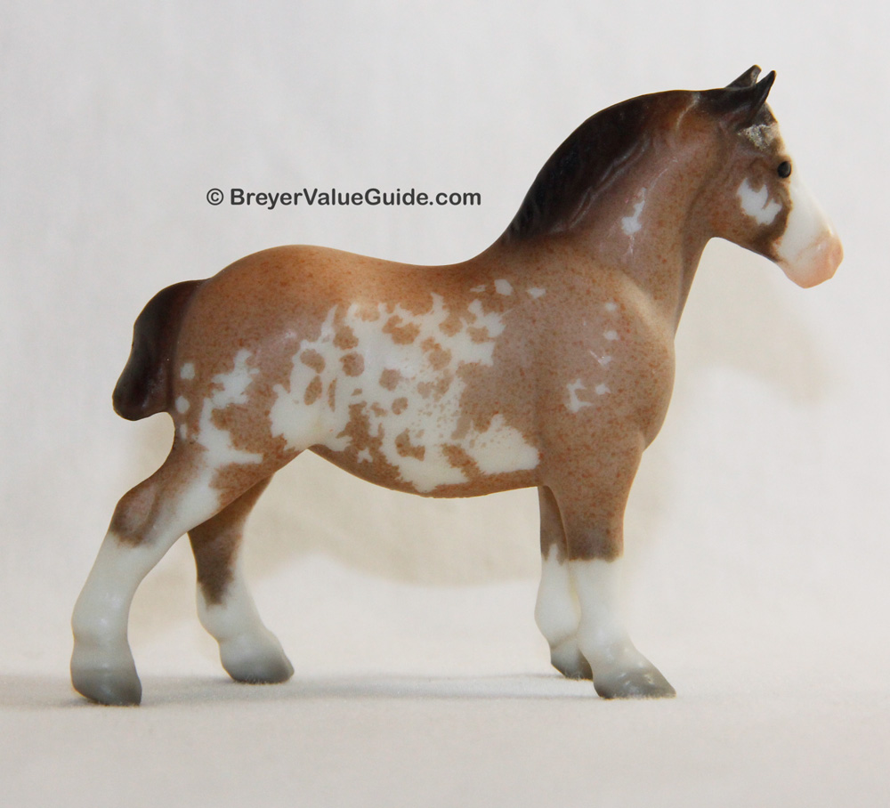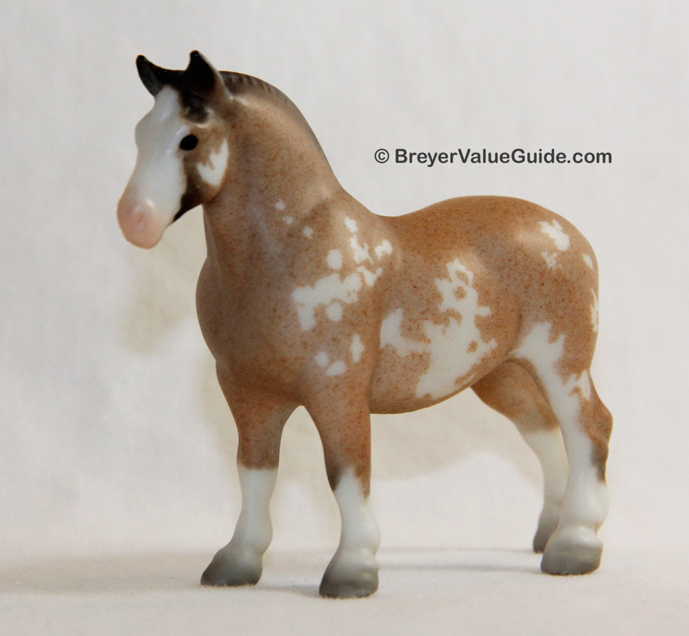 Matte roan pinto; darker mane and tail; bald face; 4 socks; grey hooves; JCPenney SR