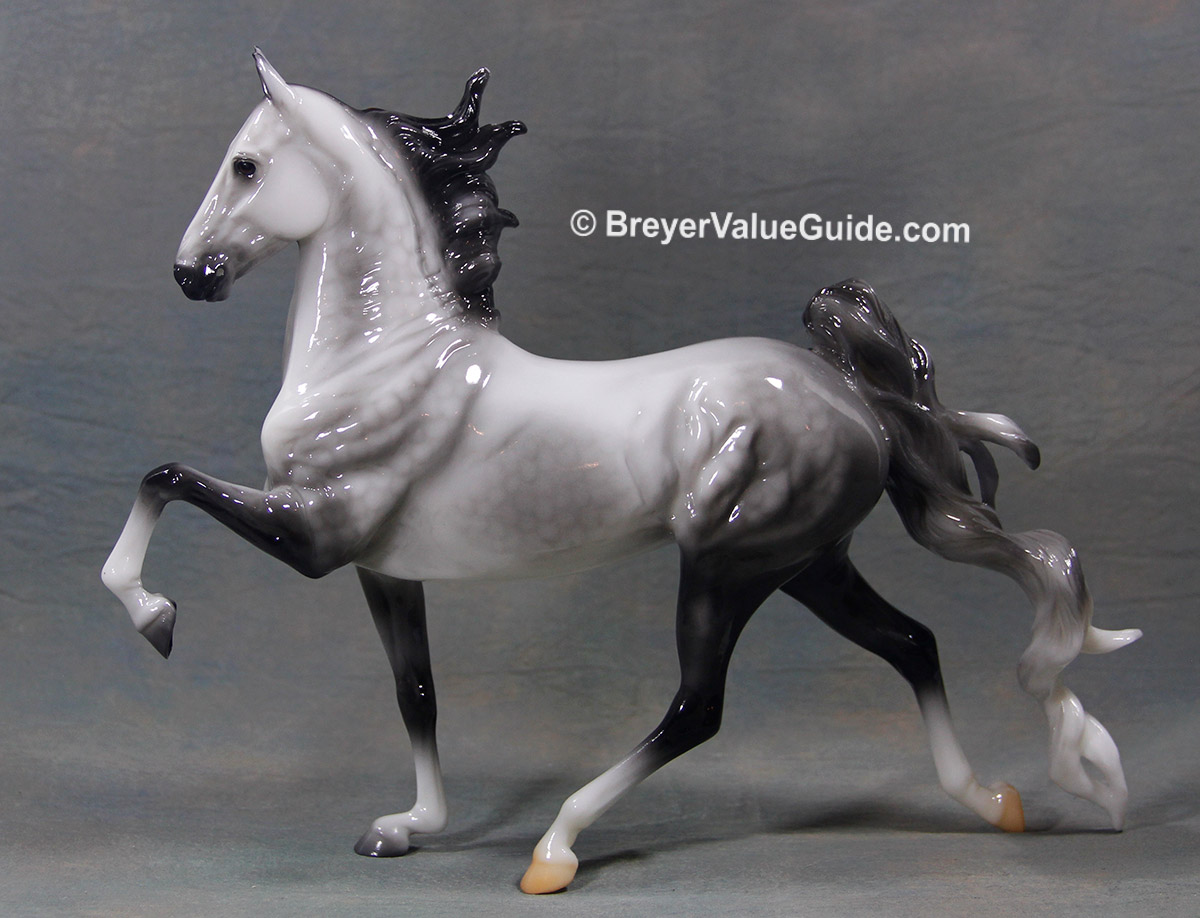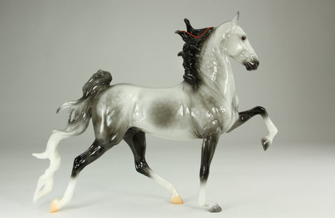 Glossy dapple grey, 4 socks, 2 grey hooves, 2 natural hooves, red ribbon, BreyerFest SR, 1/375 glossy