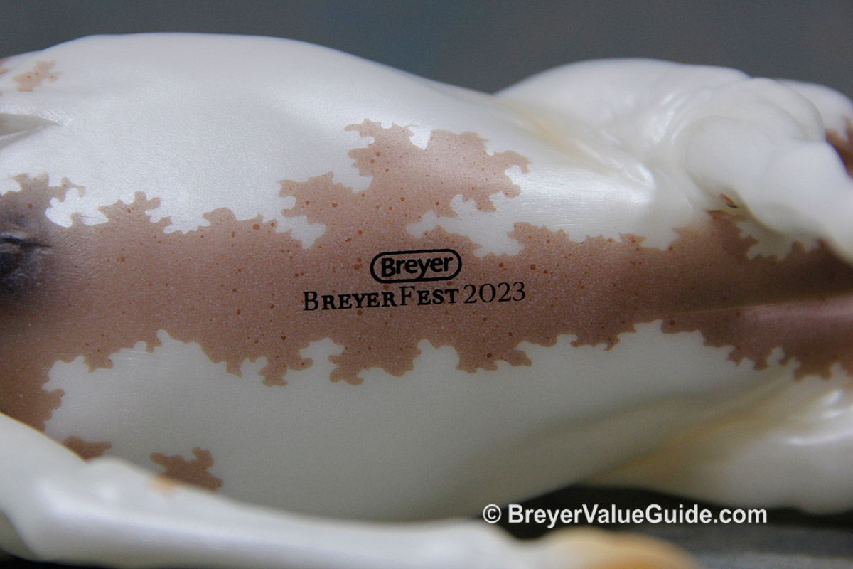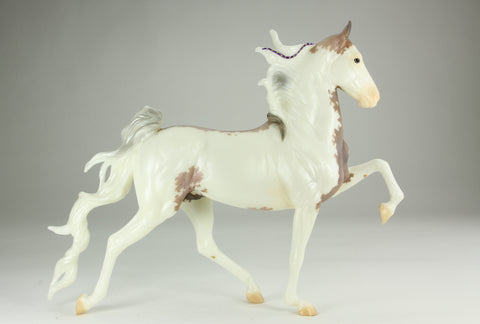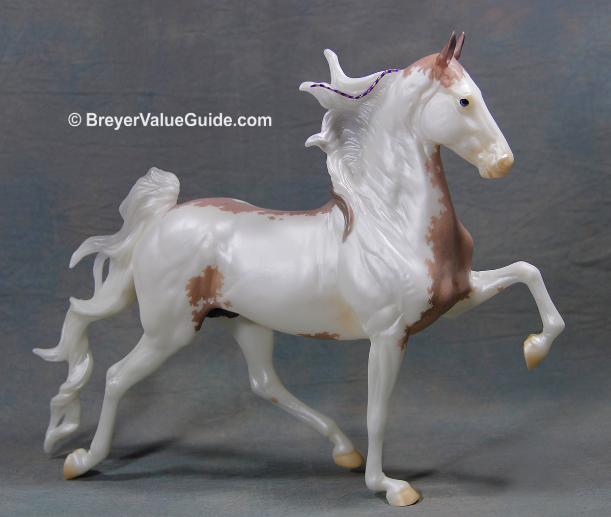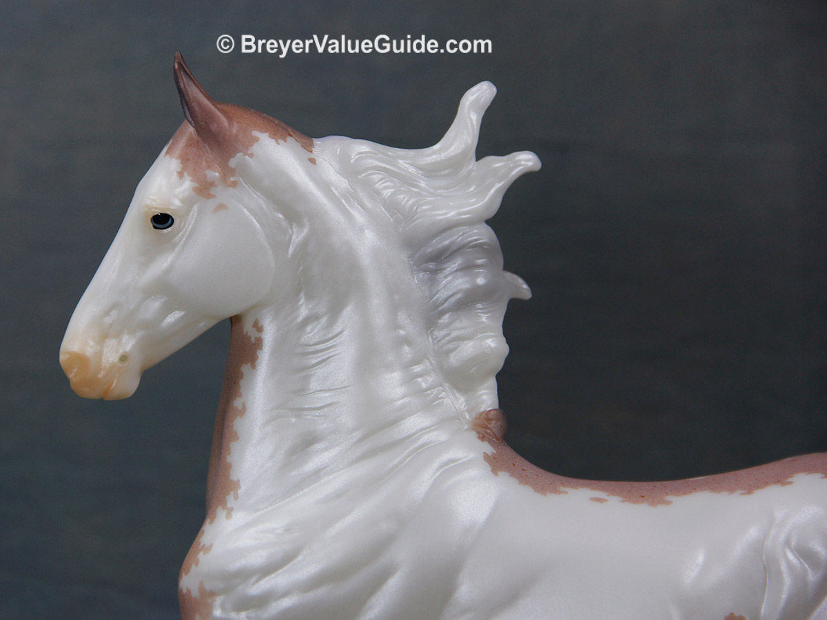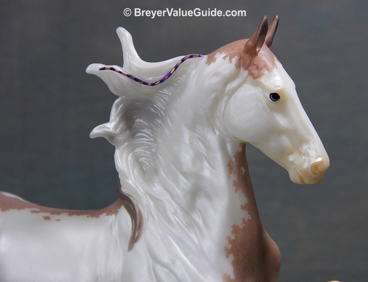 Pearly chestnut roan frame pinto, purple and gold ribbon, blue eyes, BreyerFest SR, 1/950 matte