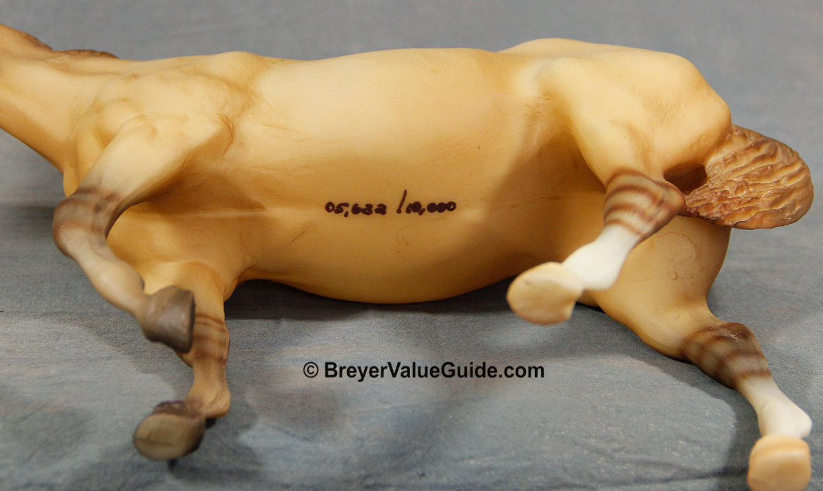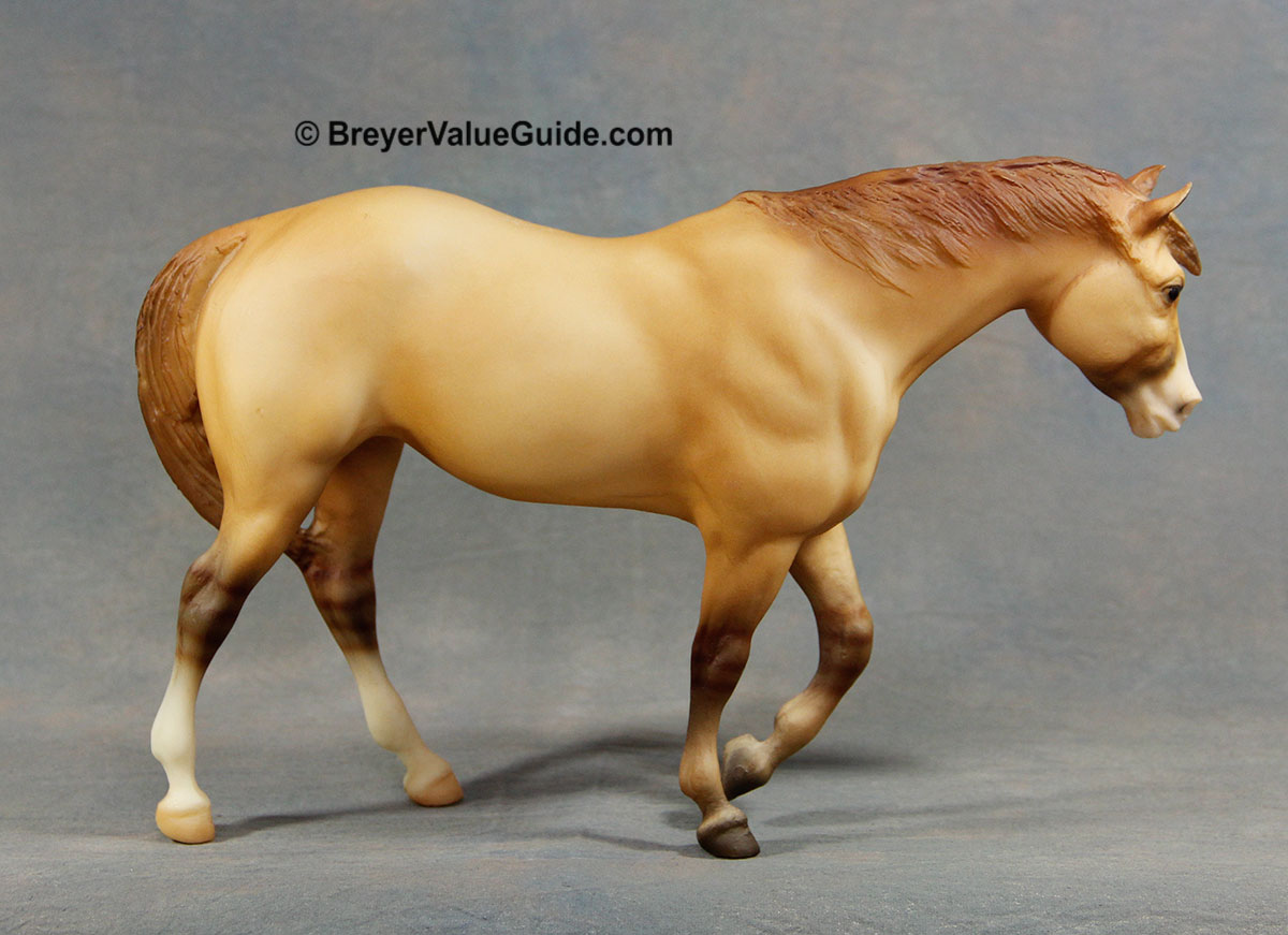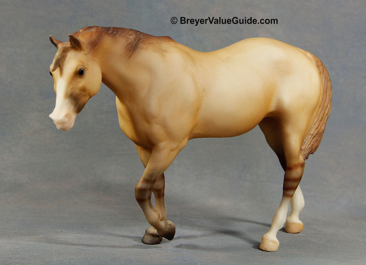 Matte light dun, short blaze with white over muzzle, 2 hind socks, leg barring, hand numbered, Toys R Us LE; 1/10,000