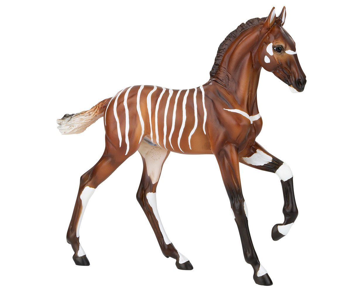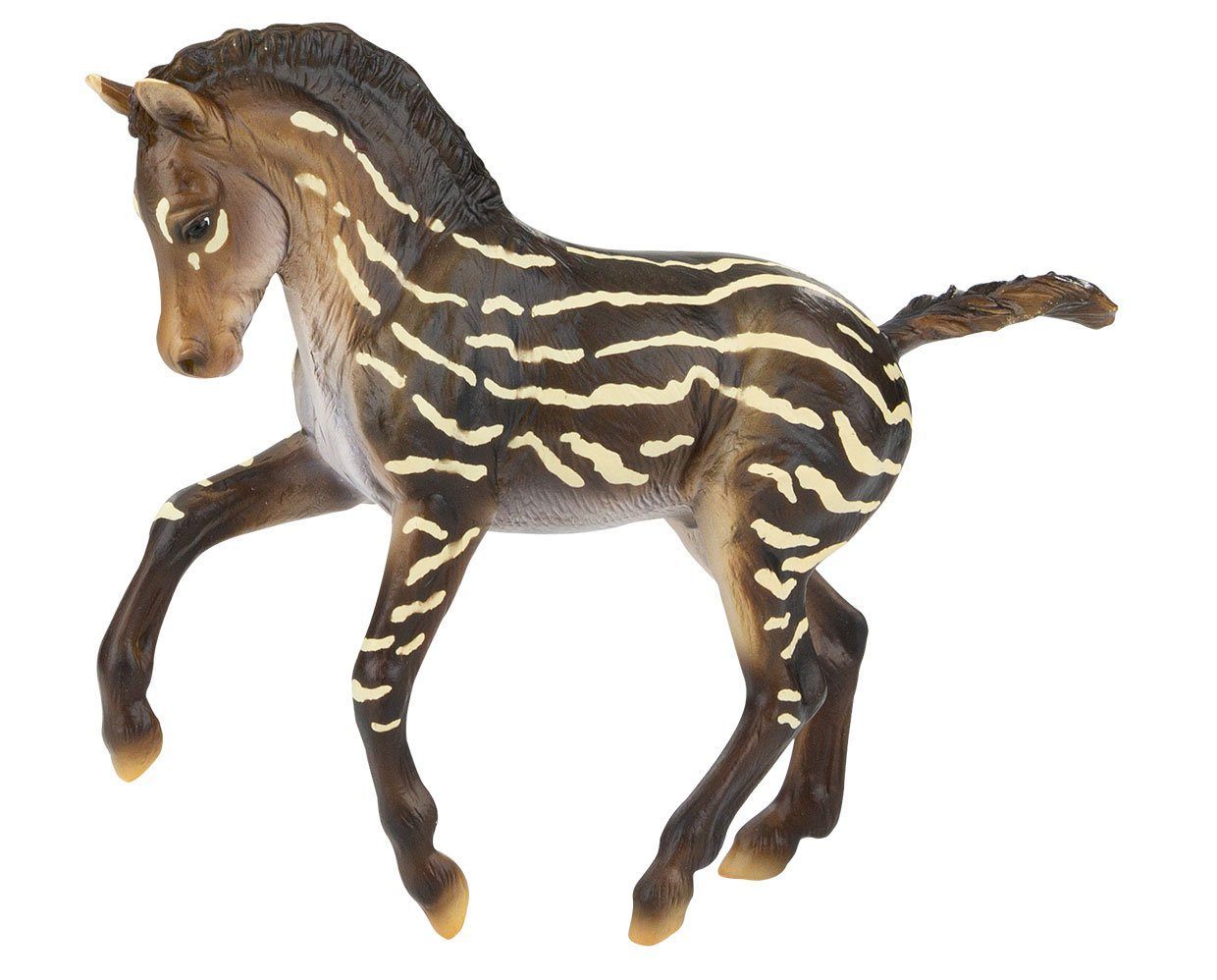 “Tamu” Andalusian Foal –  Matte reddish brown with a white basecoat, white stripes and markings, bongo