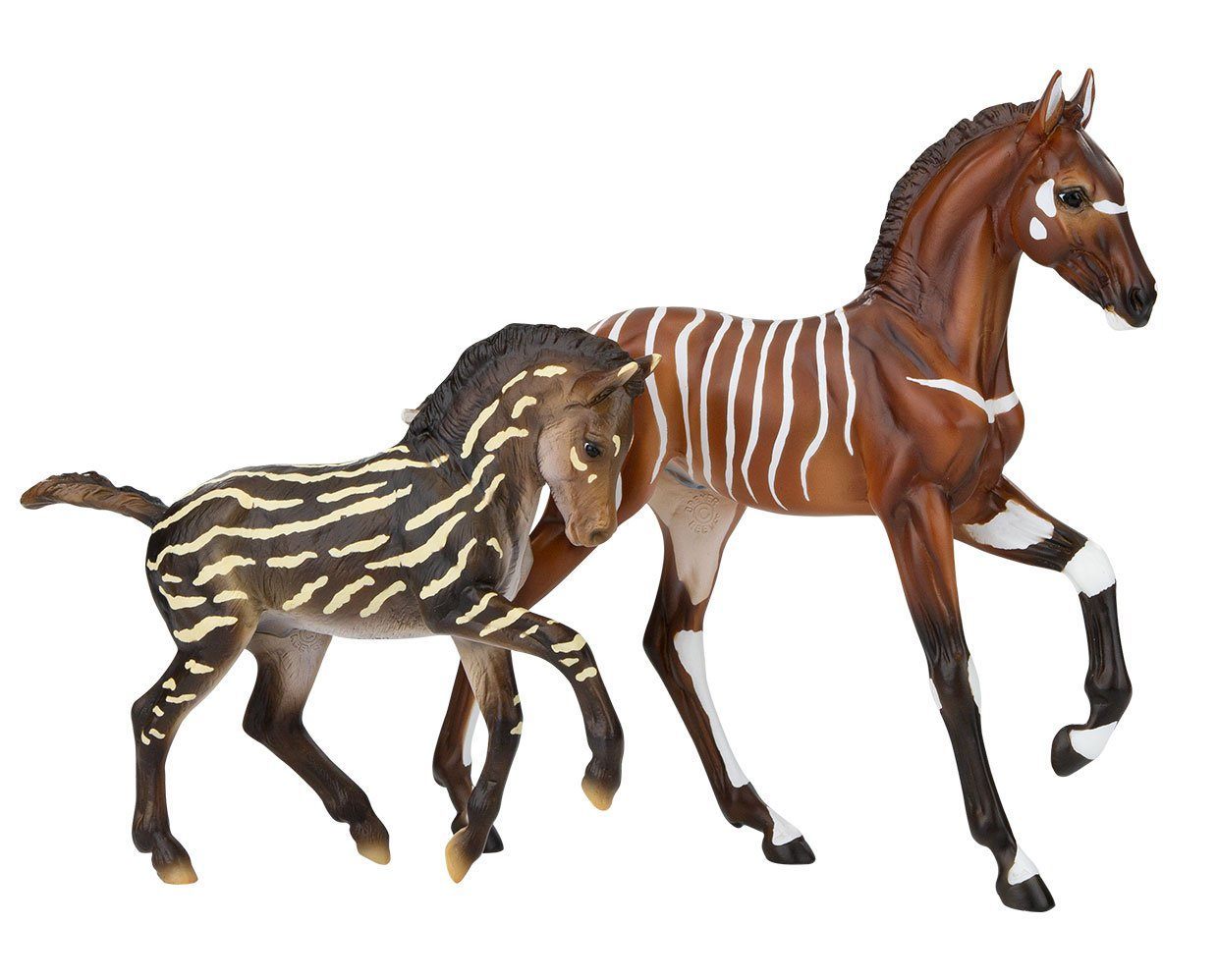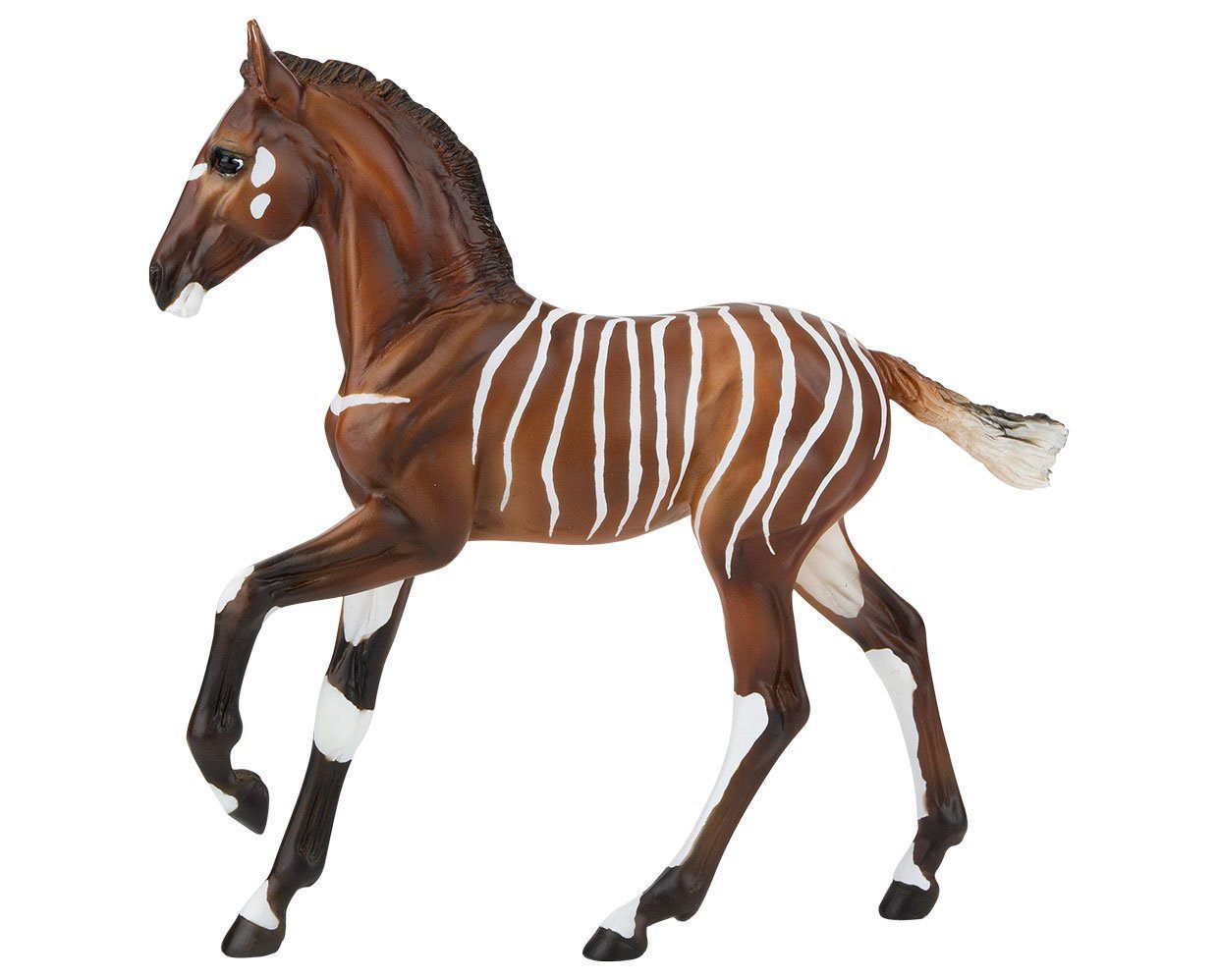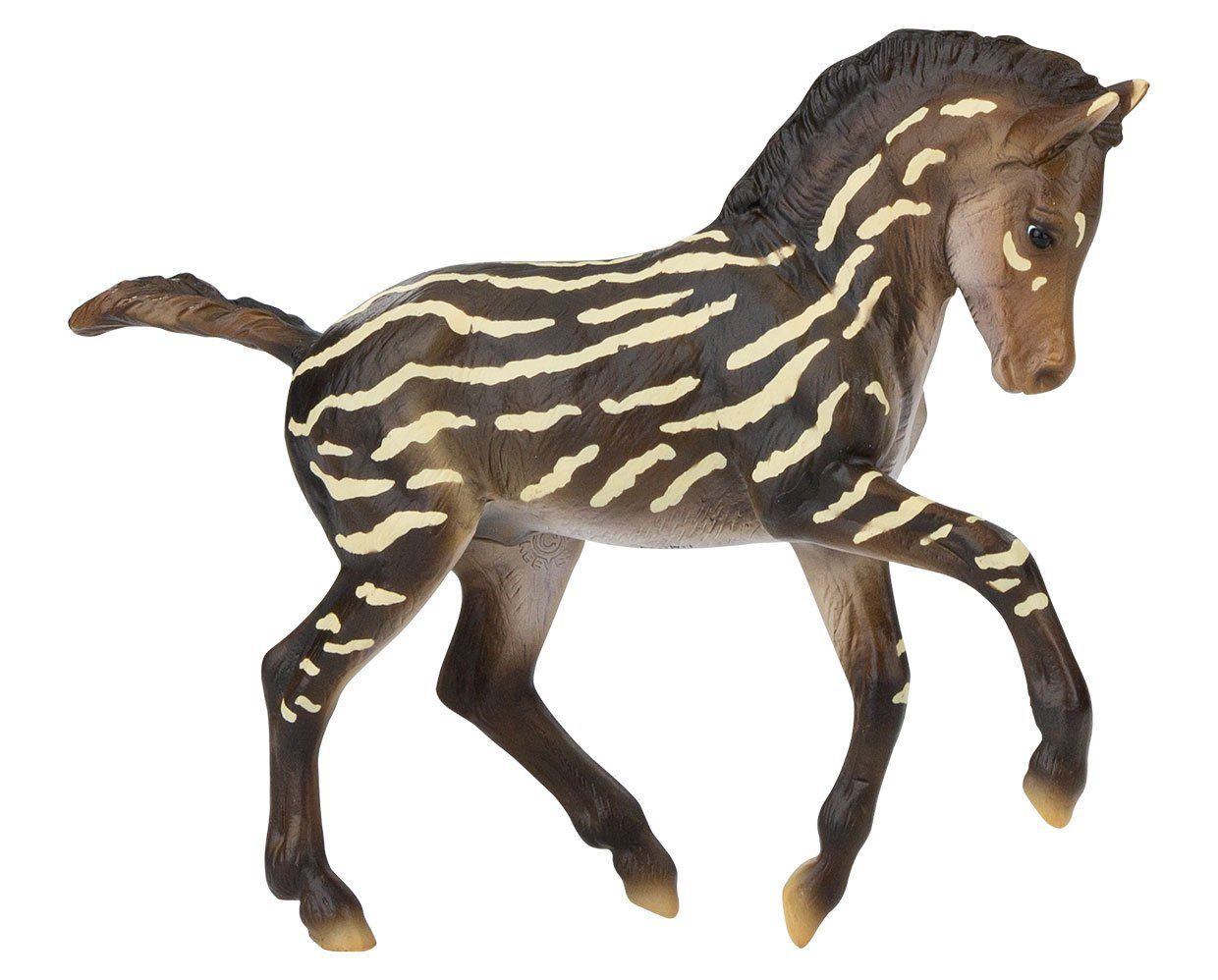 “Tamu” Andalusian Foal –  Matte reddish brown with a white basecoat, white stripes and markings, bongo