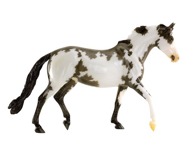 Glossy grulla overo pinto, stenciled bald face; dorsal stripe; 1 white leg with natural hoof, detailed blue eyes, “Teton 2019” stamp on belly, America the Beautiful Series, 1/350