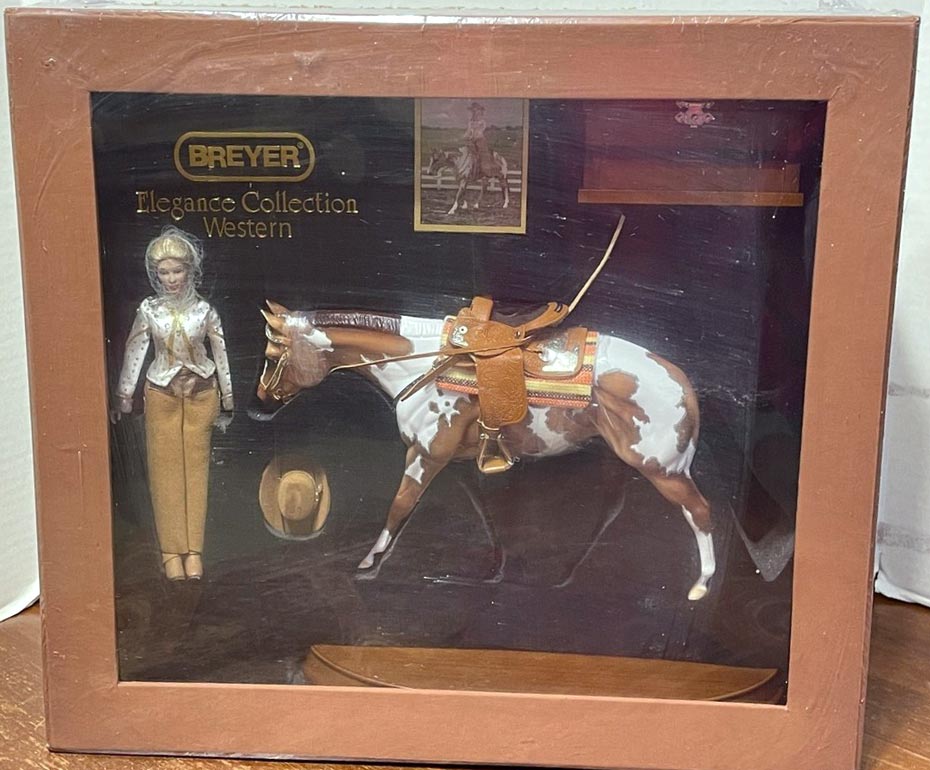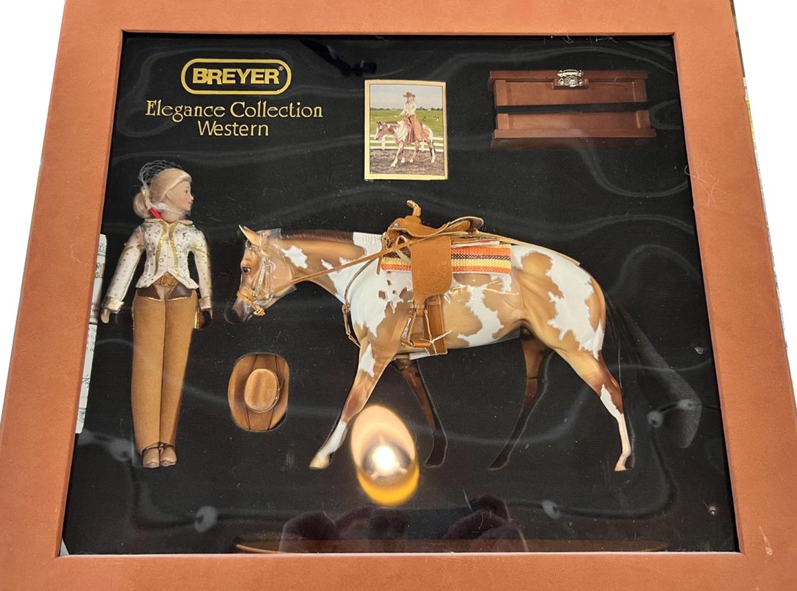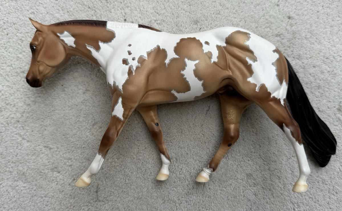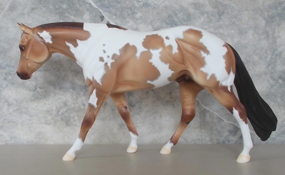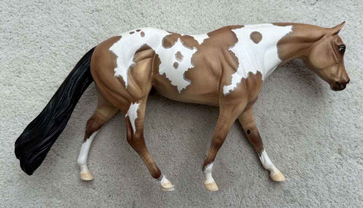 Matte dun pinto; leg barring; mapped markings; 4 socks; includes doll; western tack and accessories