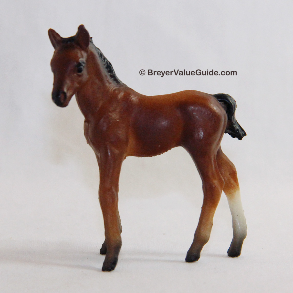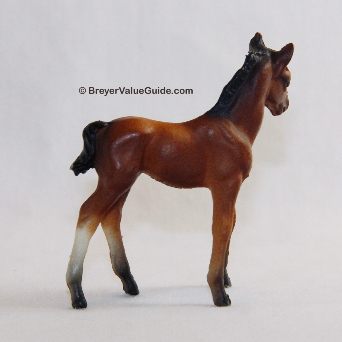 Matte light bay; black mane and tail; 2-4 socks