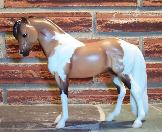 Matte light bay pinto; snip; white legs; JCPenney SR – with Cleveland Bay