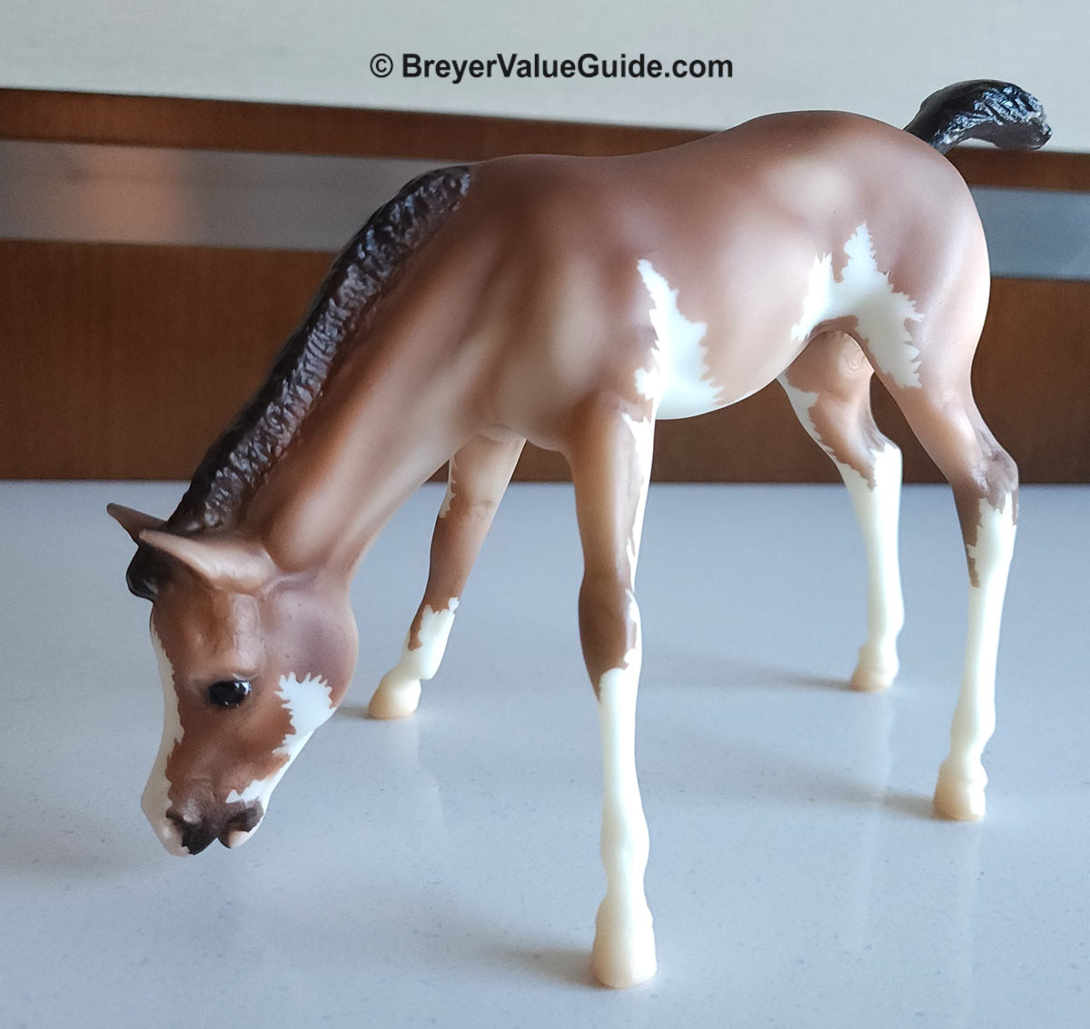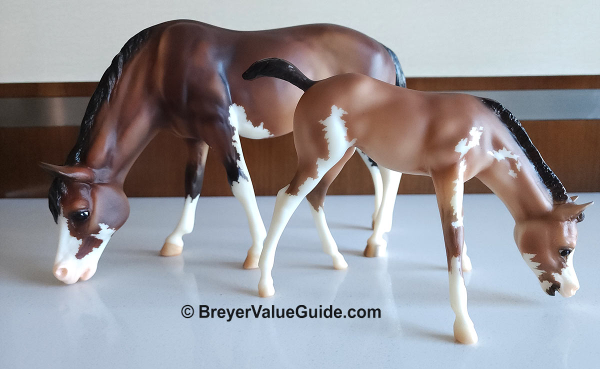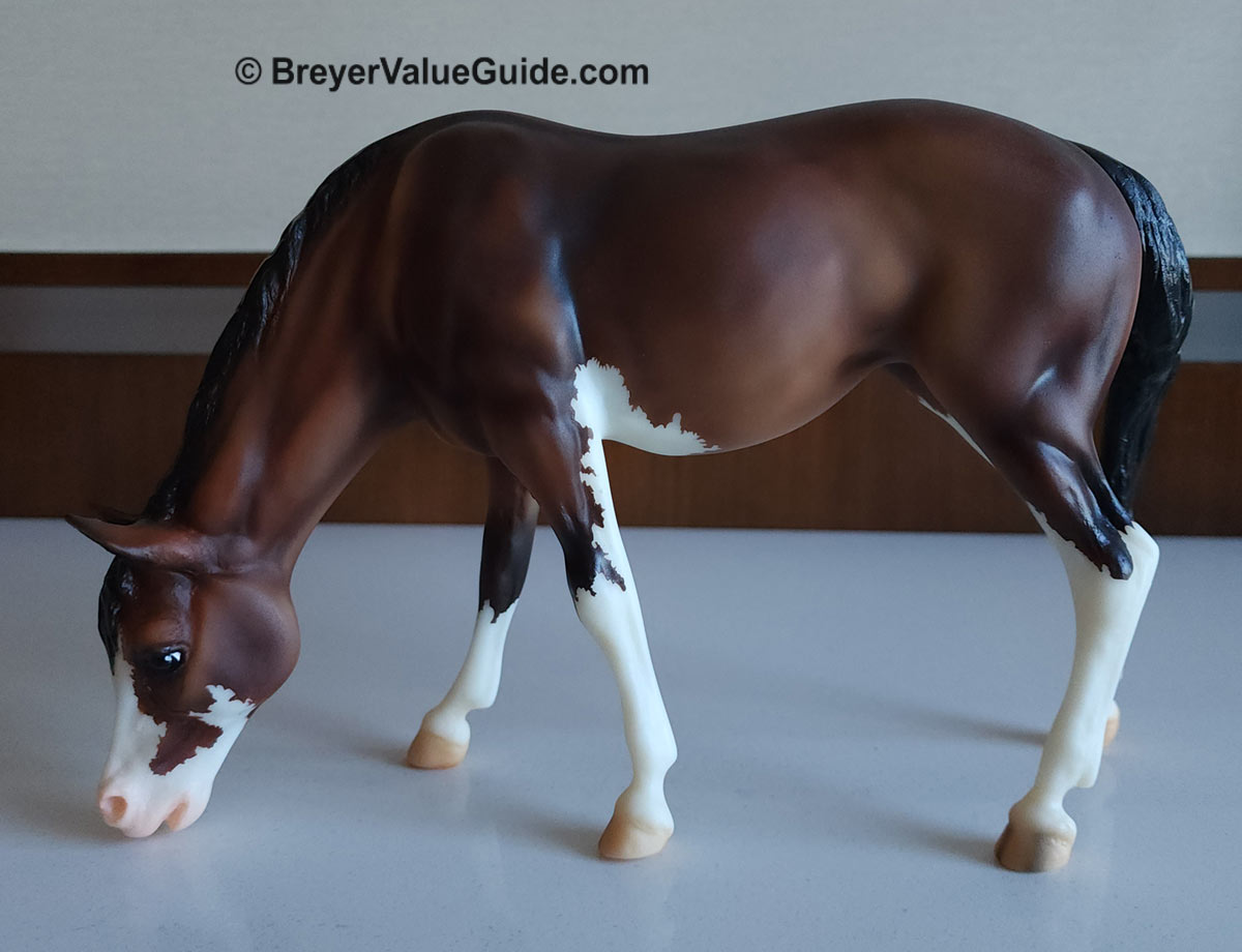 Foal – Matte baby bay pinto, stenciled bald face, 4 high whites, Hoofbeats & Maple Treats Event SR, 1/52