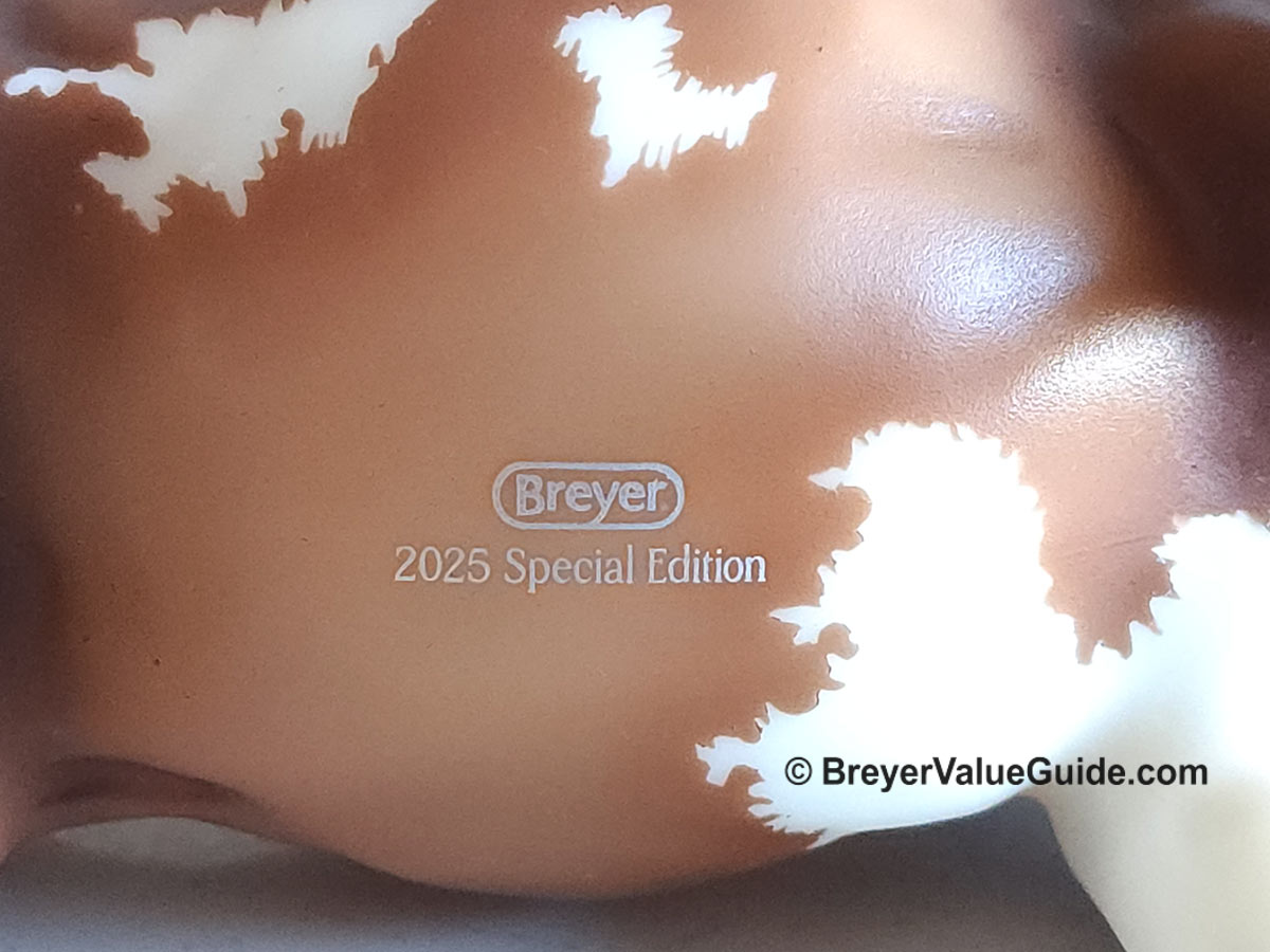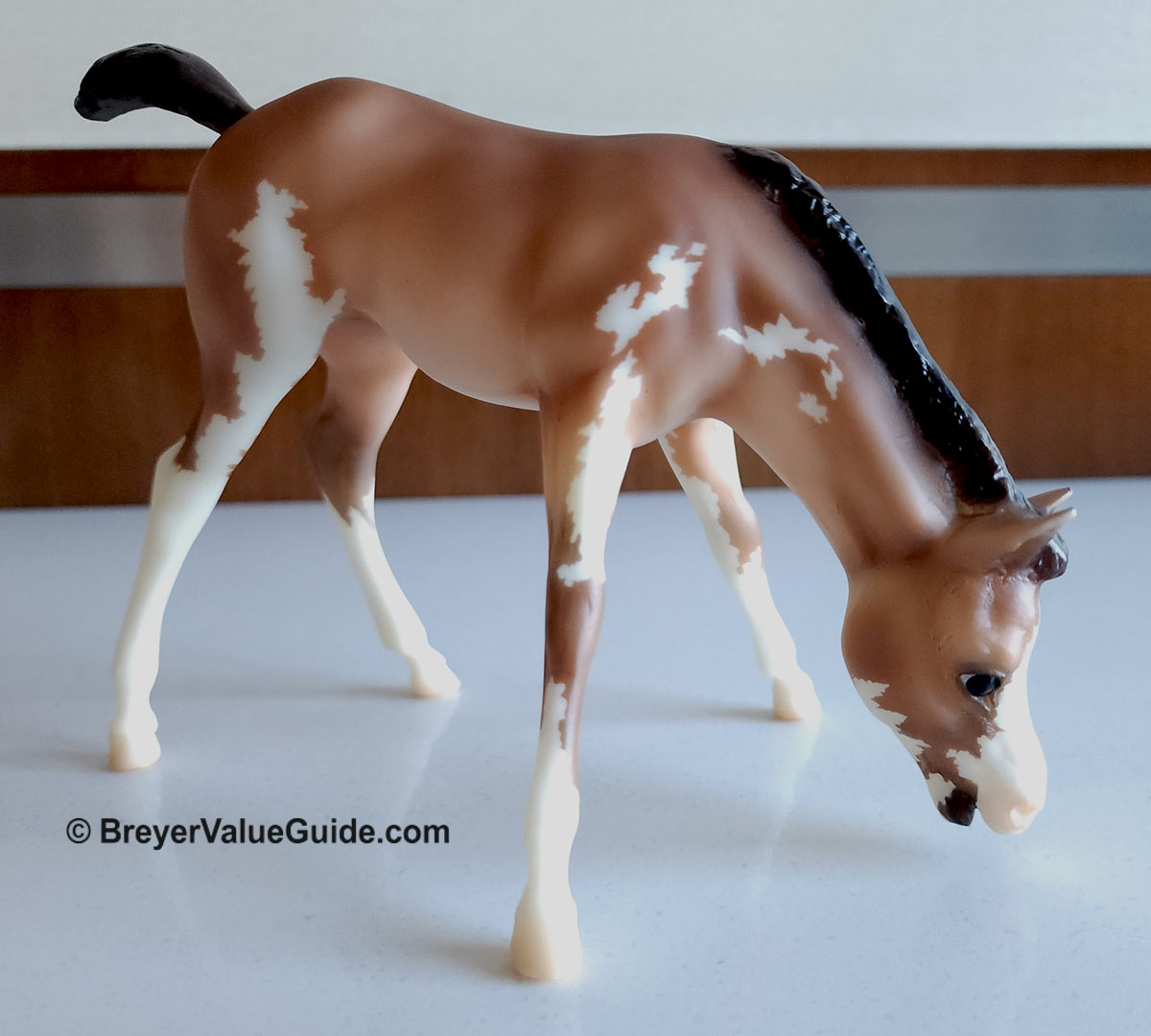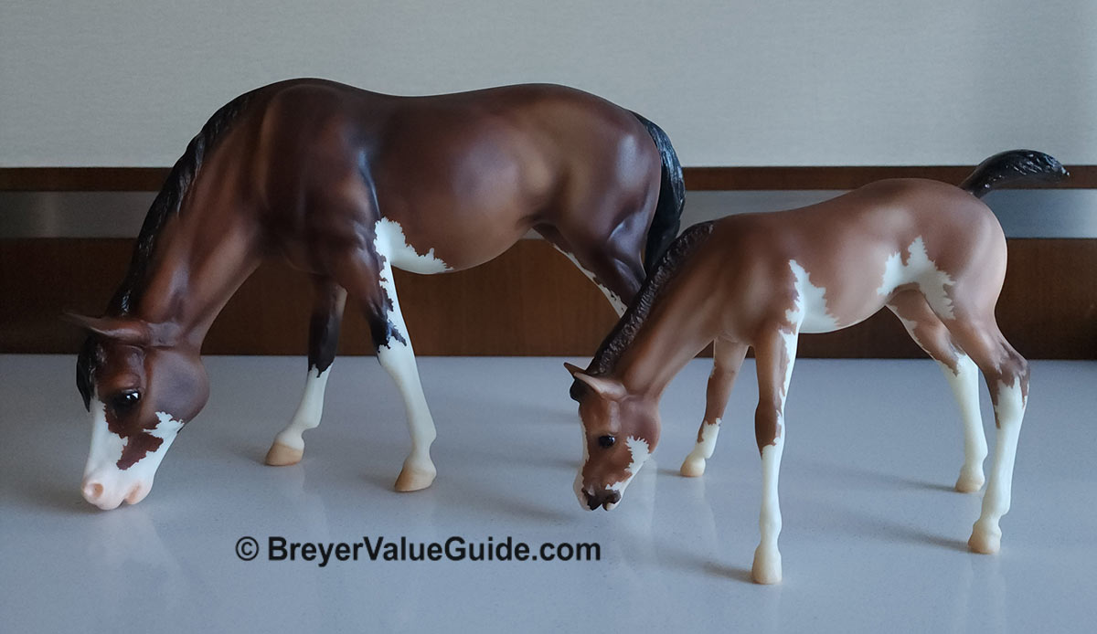 Foal – Matte baby bay pinto, stenciled bald face, 4 high whites, Hoofbeats & Maple Treats Event SR, 1/52