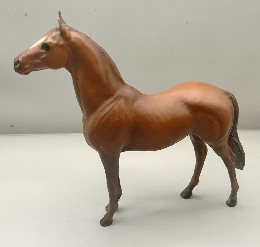 Matte chestnut; darker mane and tail; elongated star; Hobby Center Toys SR; 1/1000 – with Swaps; Terrang